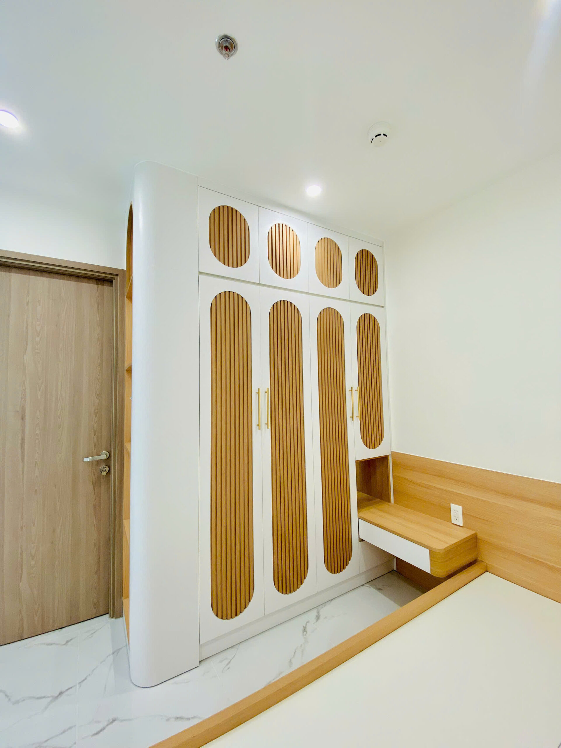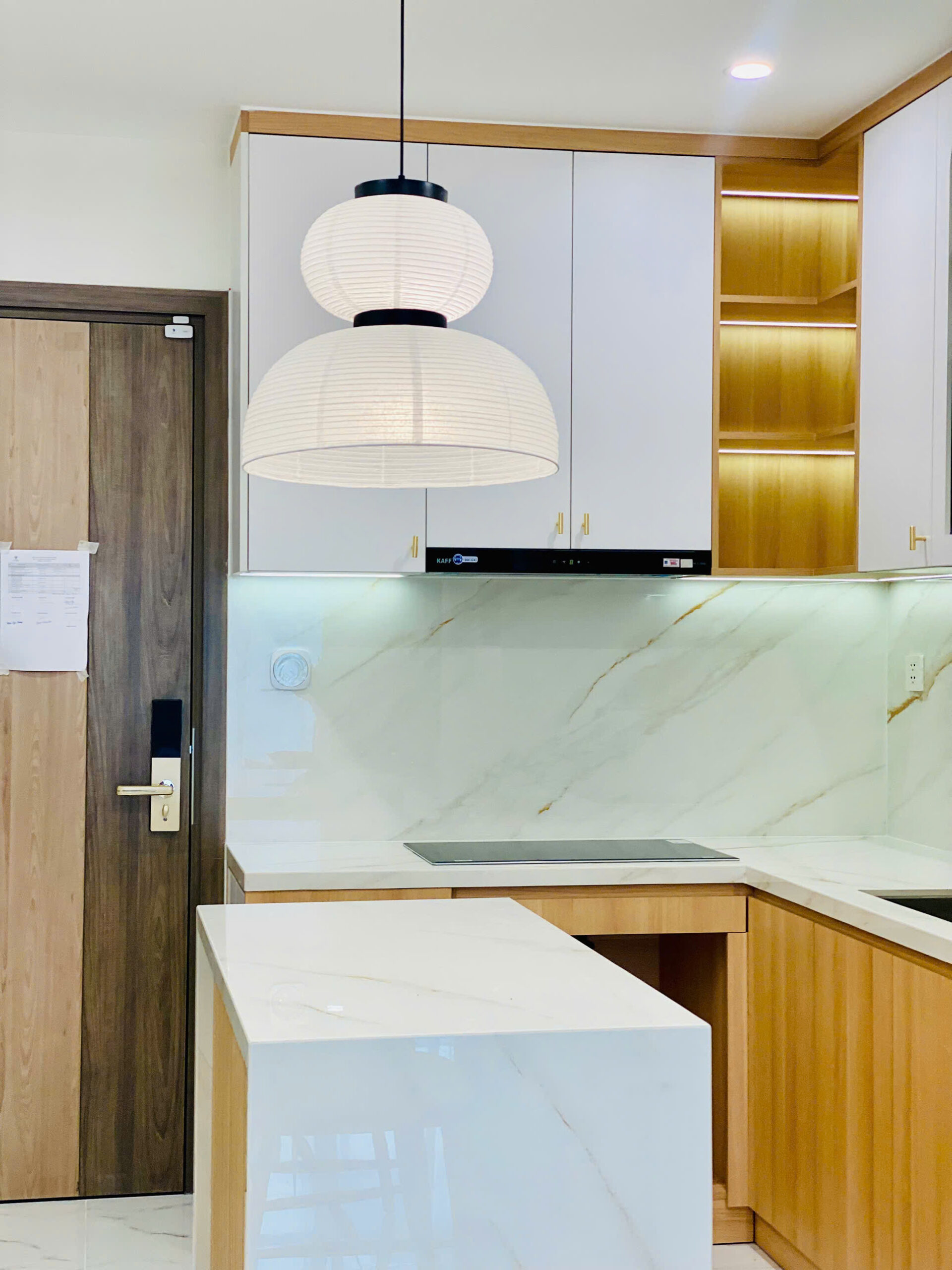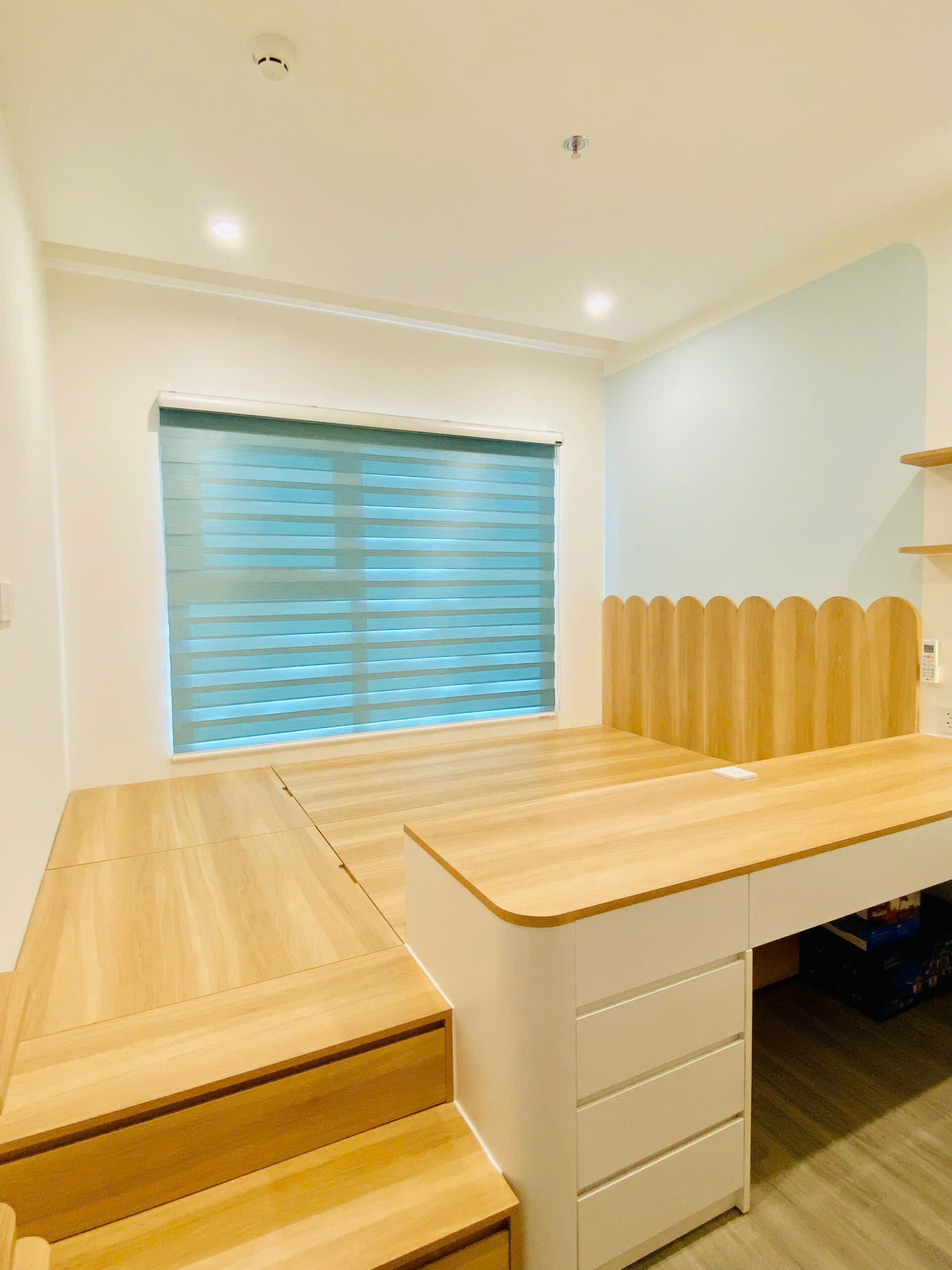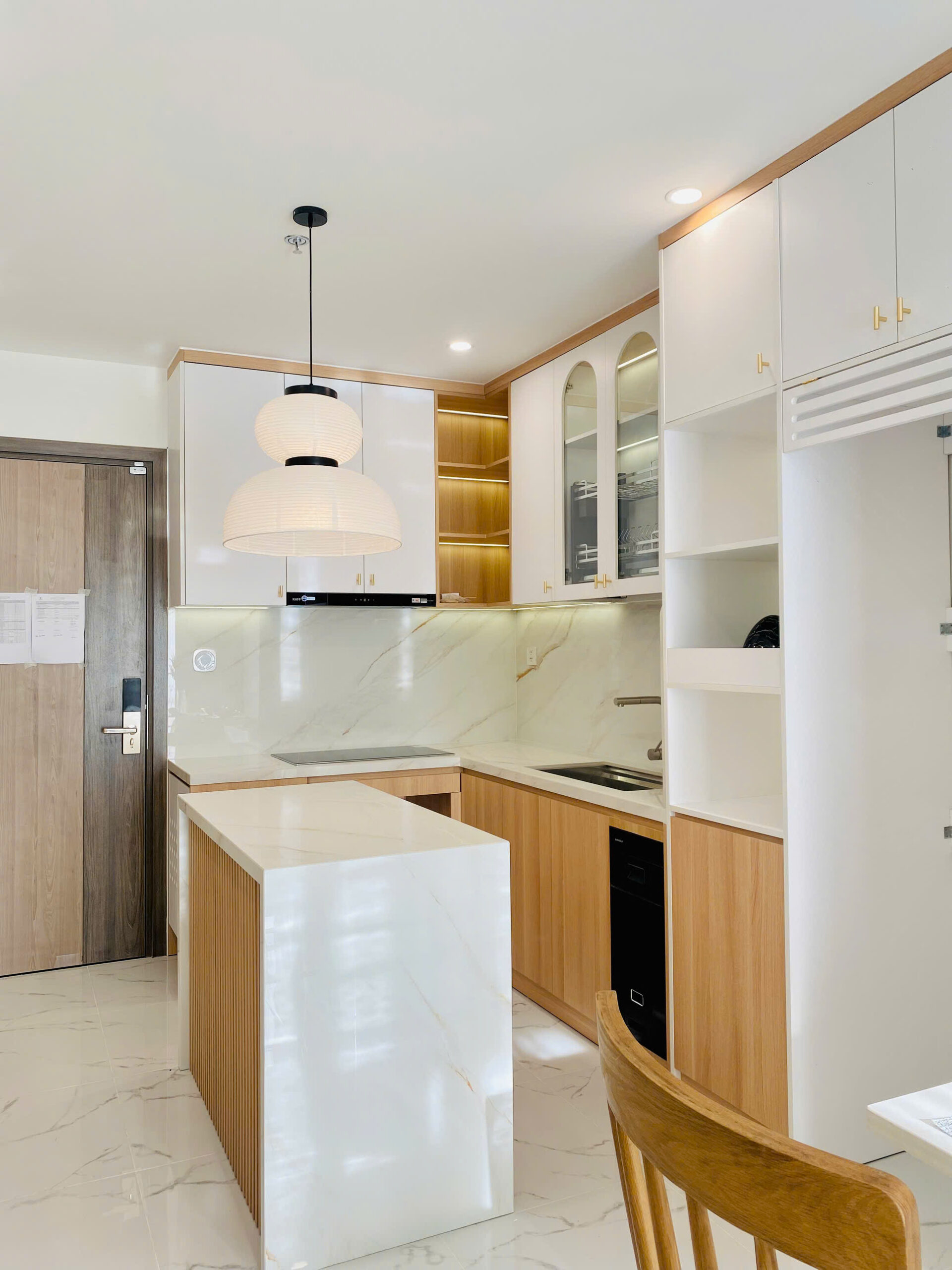 Tông màu chủ đạo là gỗ tự nhiên kết hợp trắng, mang lại cảm giác nhẹ nhàng, gần gũi nhưng vẫn sang trọng. Hơi thở Japandi được thể hiện qua: