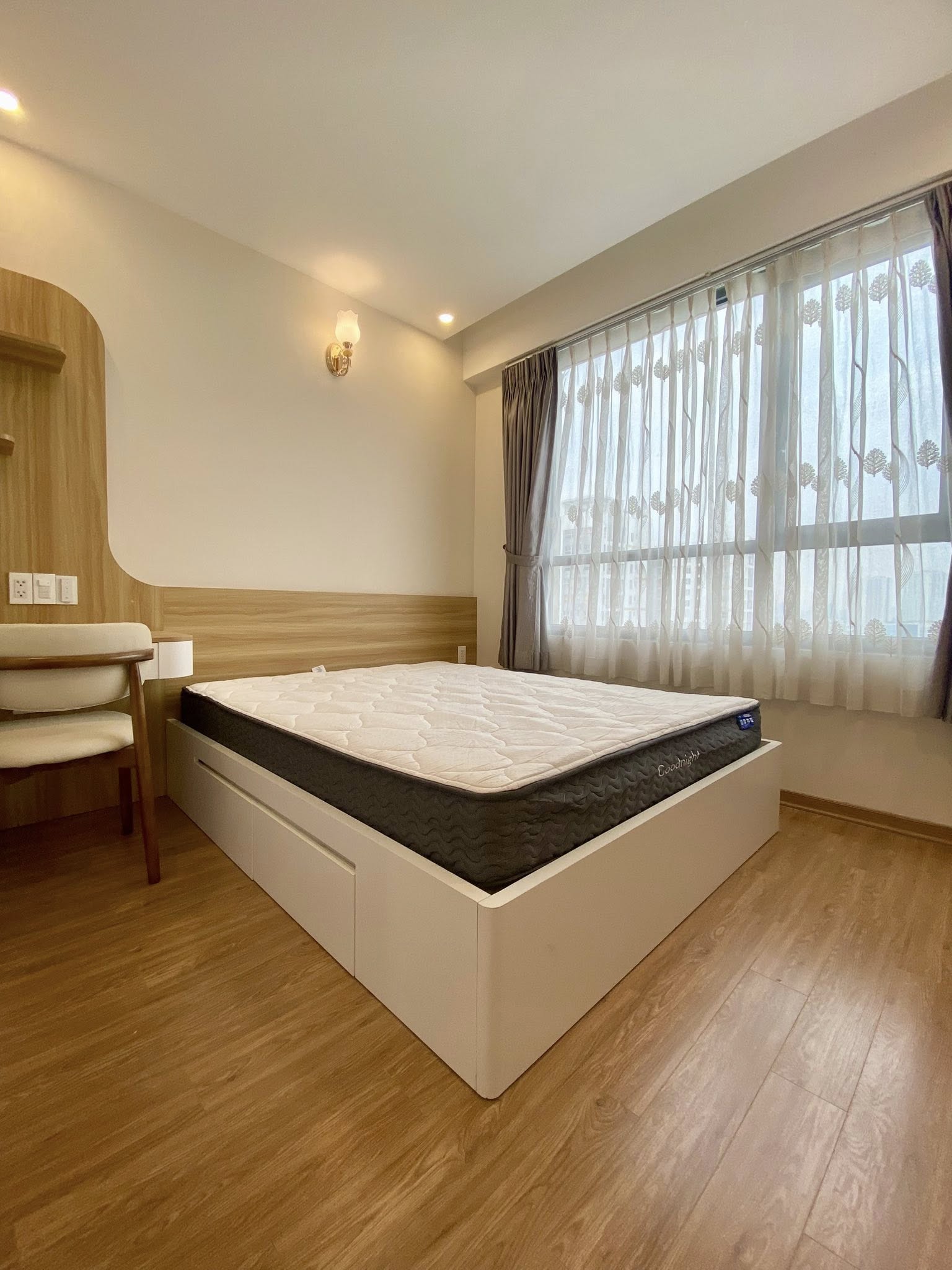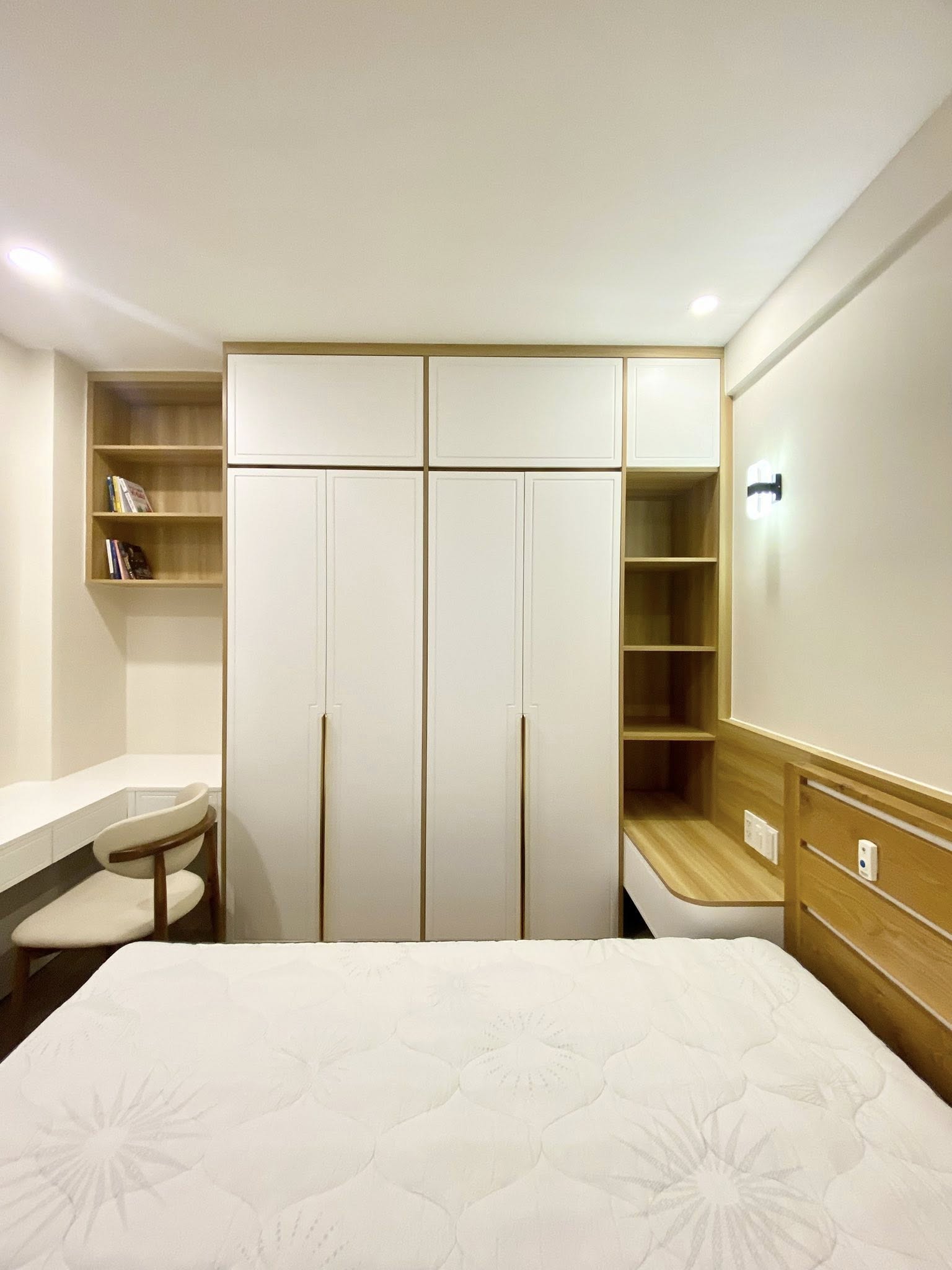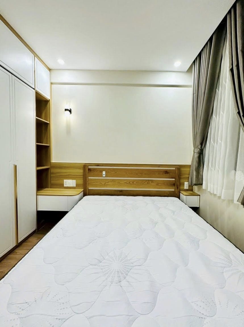 Điểm nhấn nổi bật của căn hộ là vật liệu gỗ Ba Thanh chống ẩm, hệ cánh CNC sắc nét, phụ kiện bếp cao cấp và rèm chống nắng tuyệt đối. Tất cả hạng mục đều được kết hợp hài hòa, mang lại không gian ấm áp, tiện lợi và bền vững.