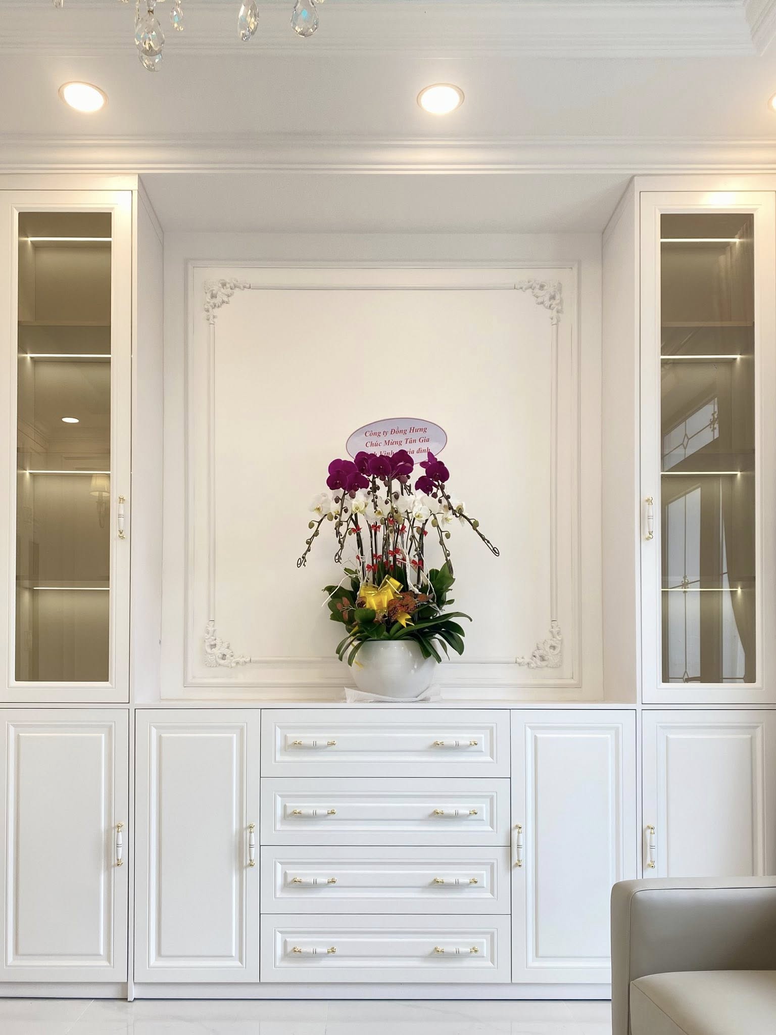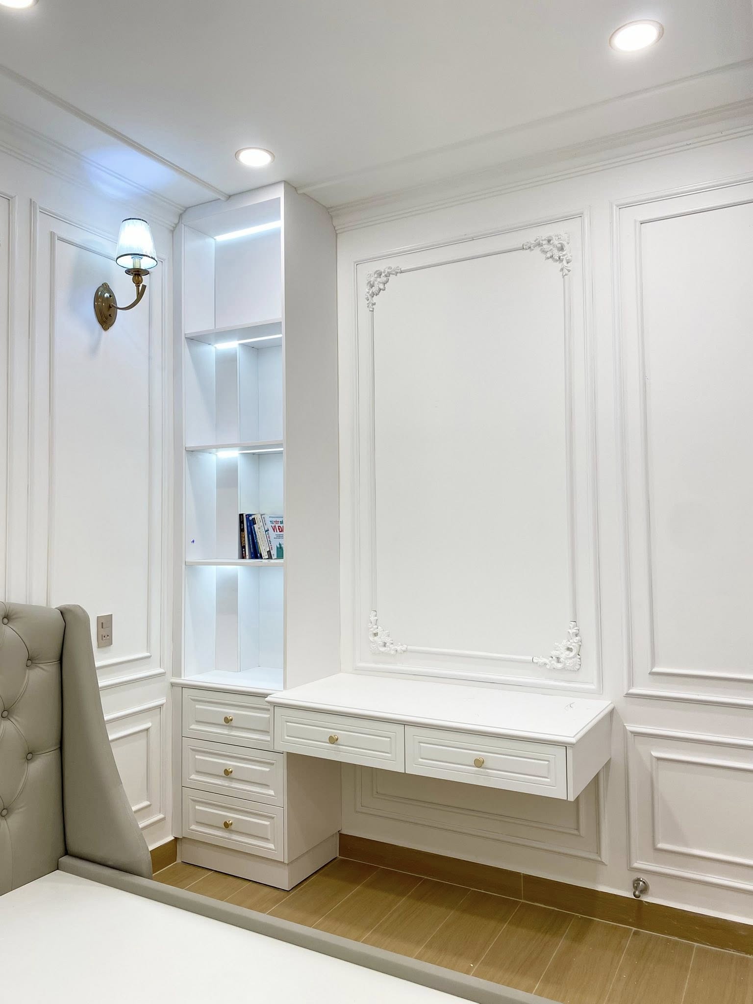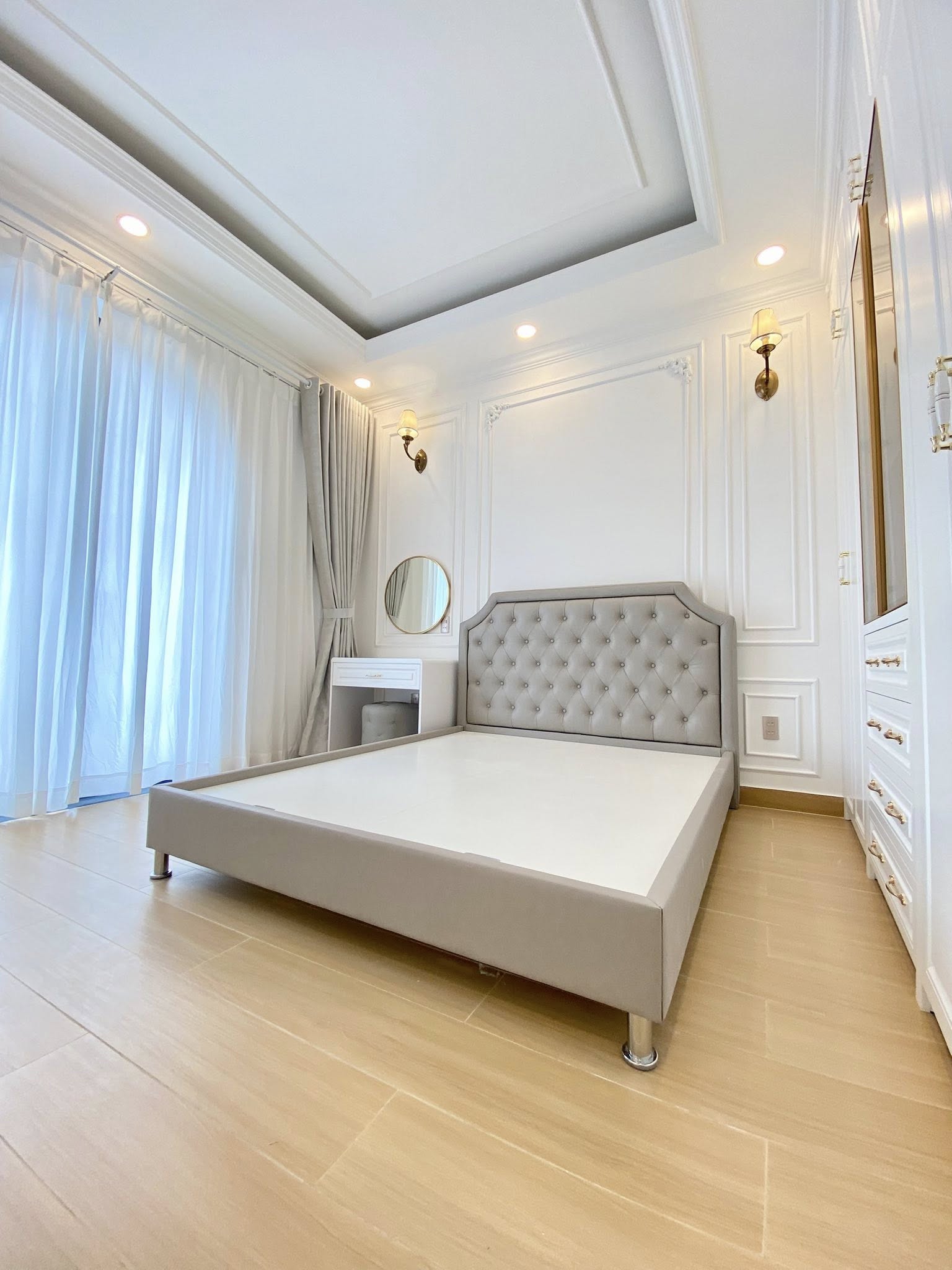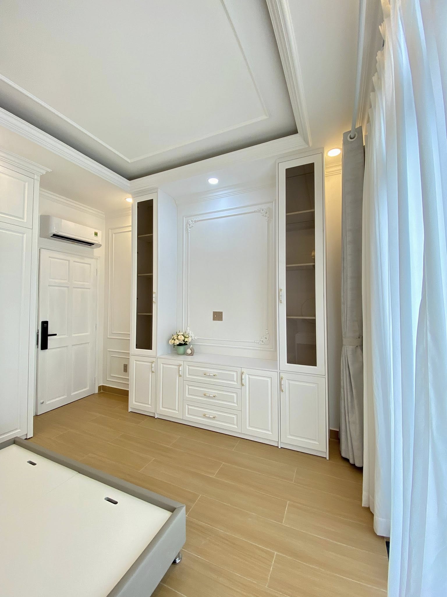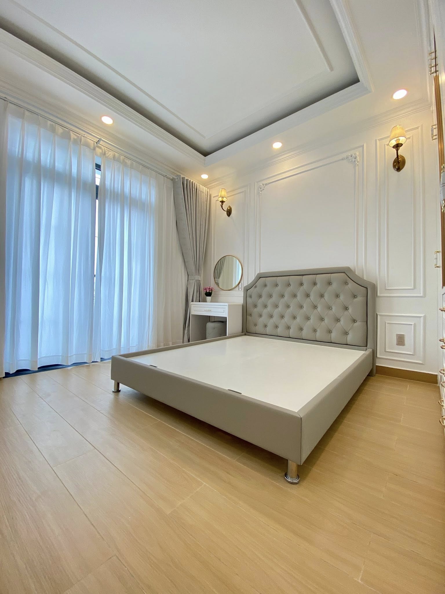 Với tổng ngân sách 4,5 tỷ đồng, công trình bao gồm toàn bộ hạng mục xây dựng hoàn thiện, lắp đặt thang máy kính trong suốt, thi công phào chỉ tân cổ điển và full nội thất cao cấp, đảm bảo sự thống nhất giữa kiến trúc – thẩm mỹ – công năng.