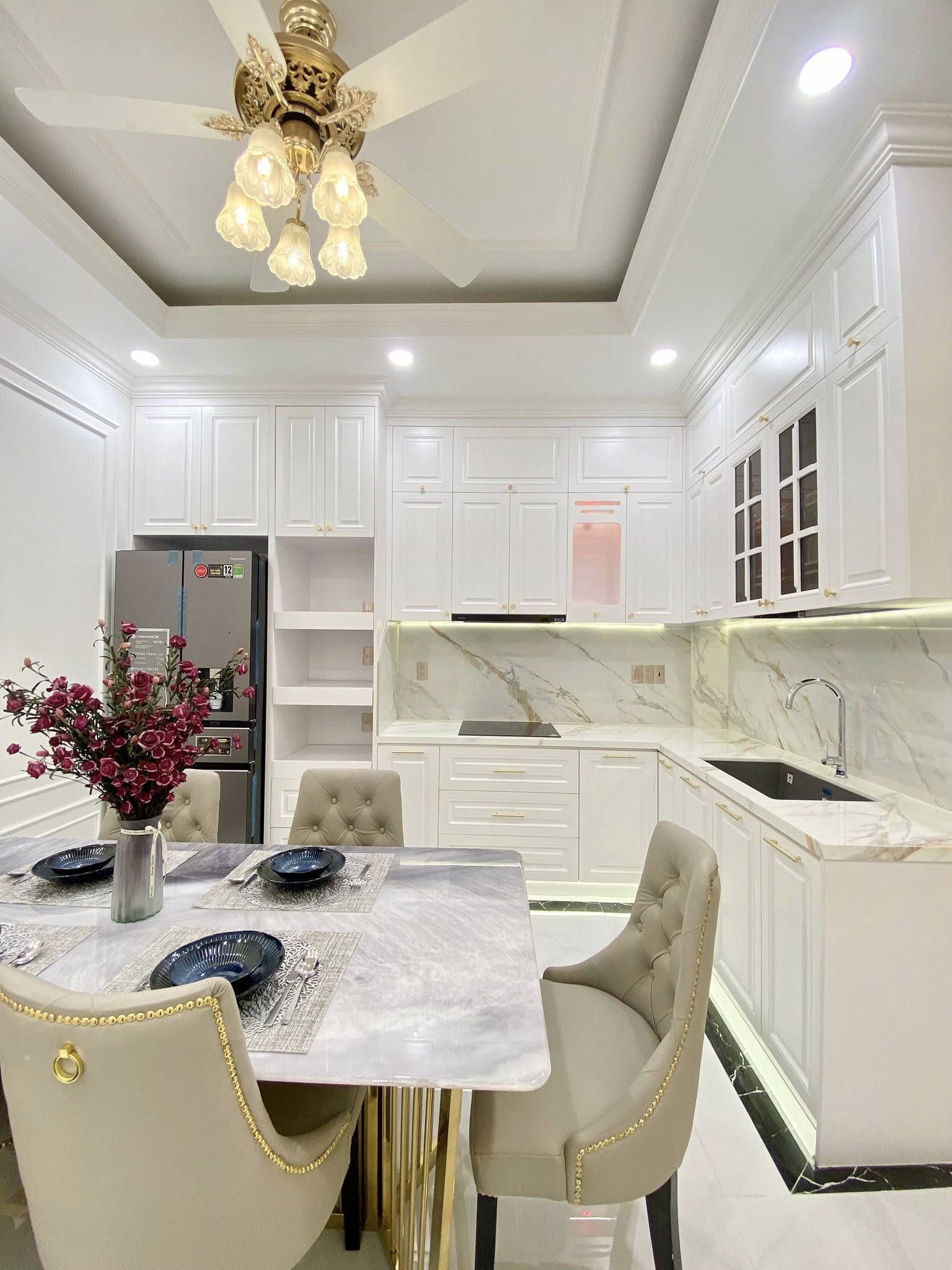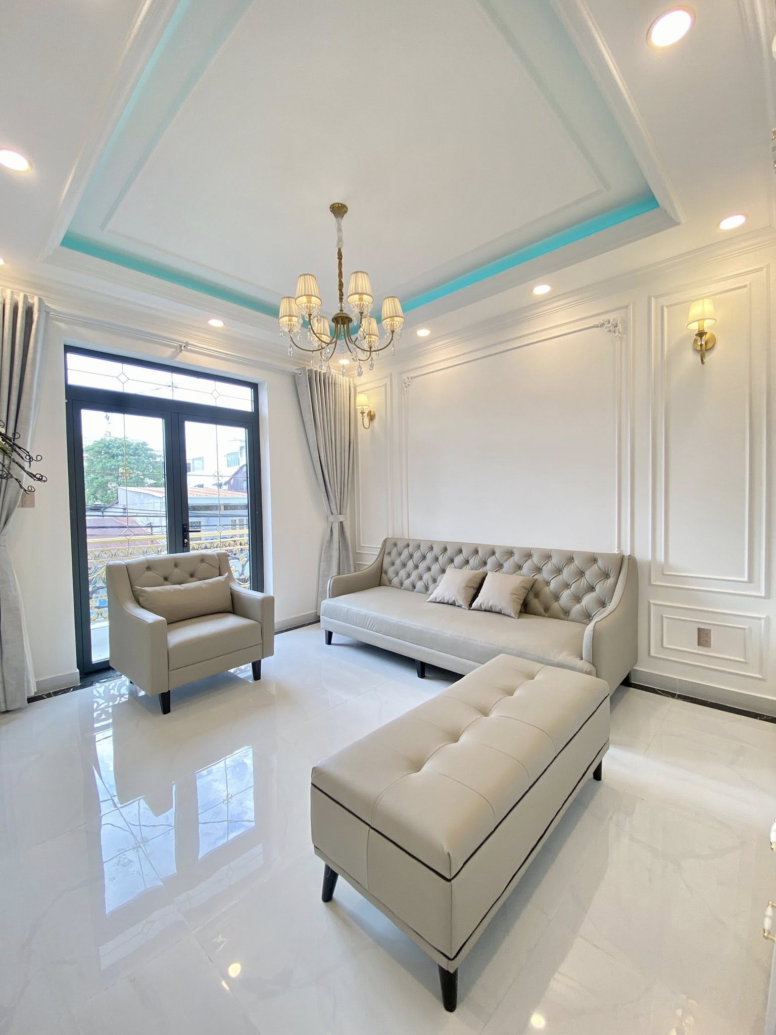Công trình nhà phố tân cổ điển của anh Vinh được đầu tư chỉn chu từ ngoại thất đến nội thất, tạo nên: