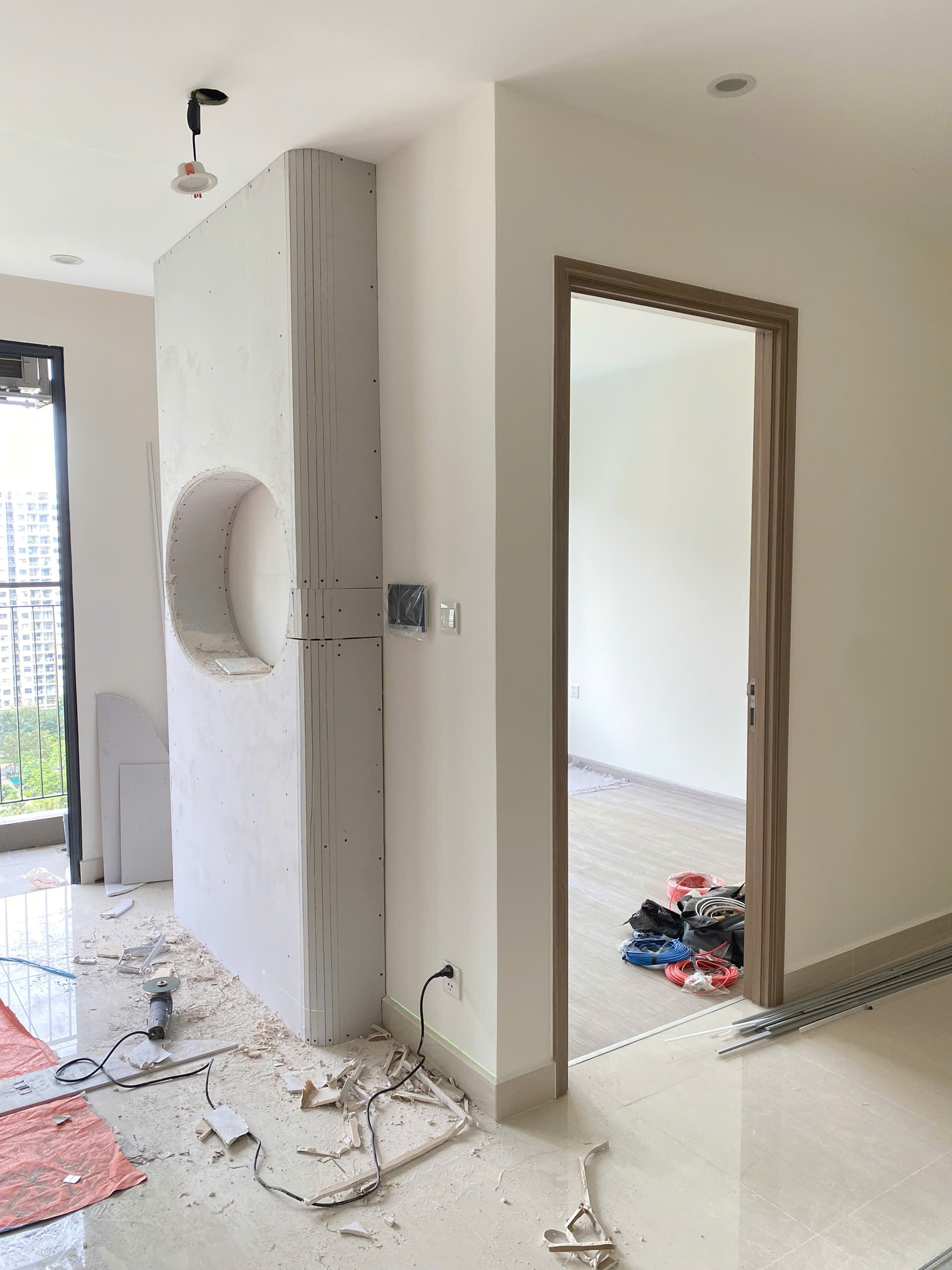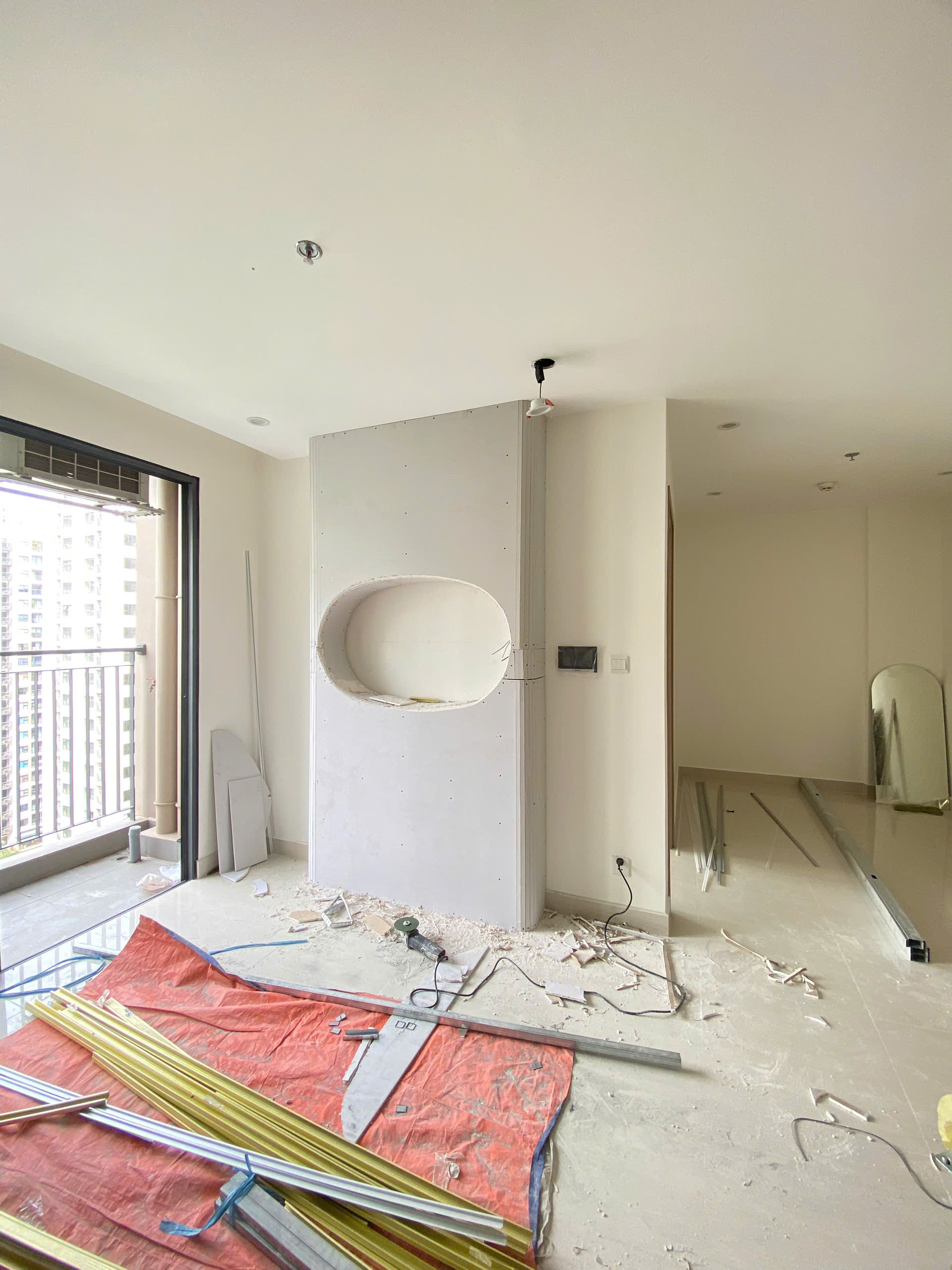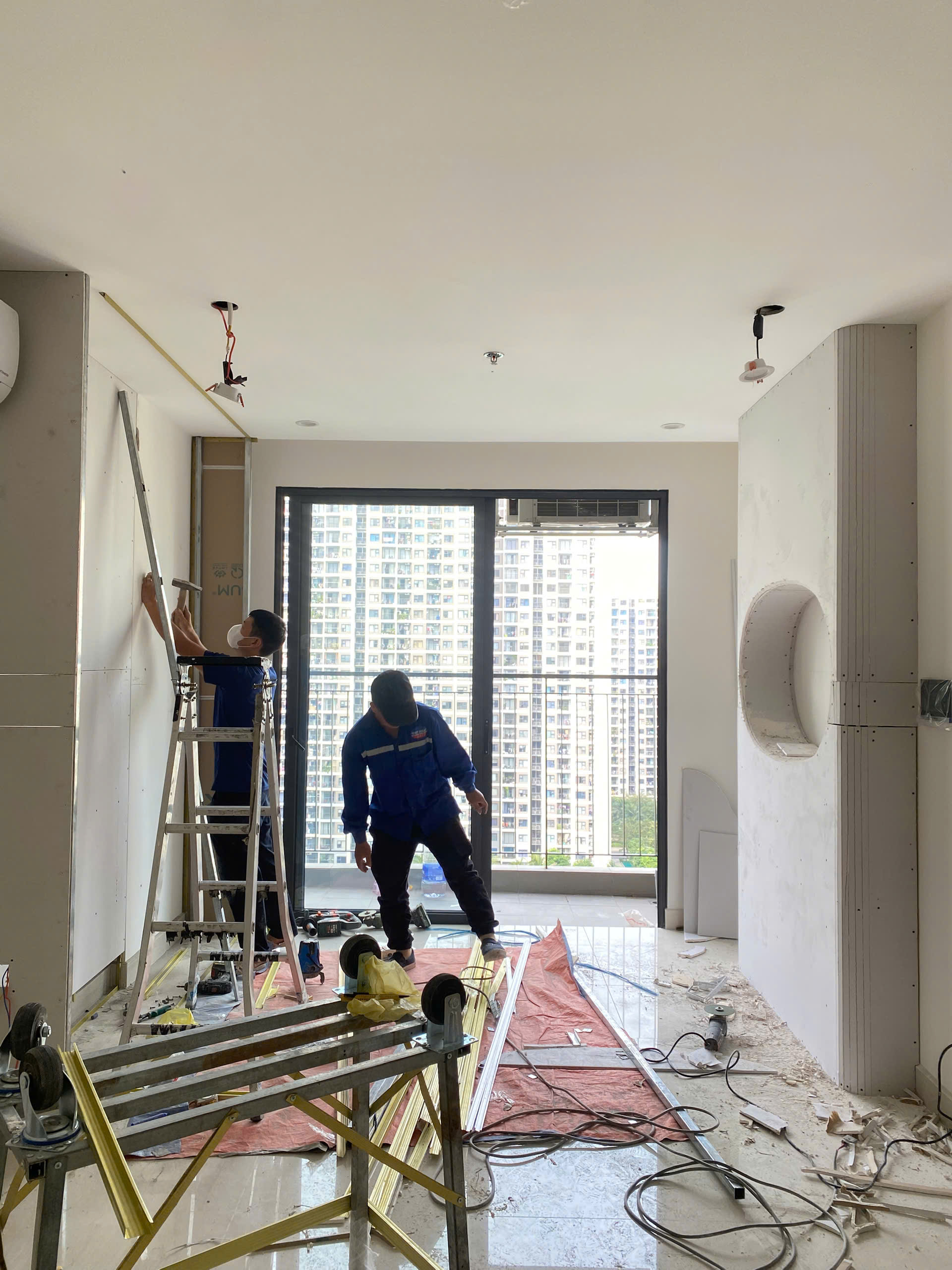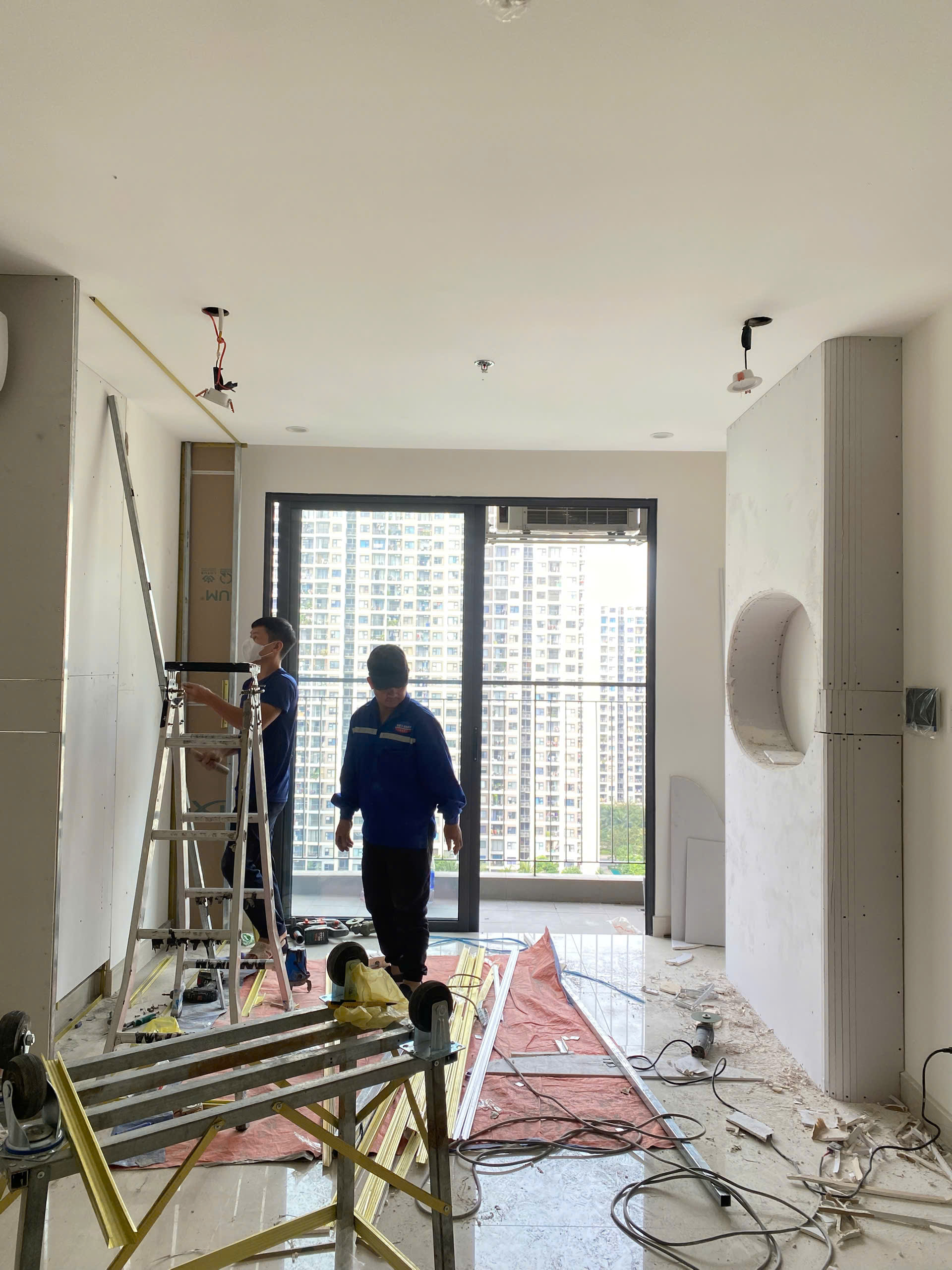 Hạng mục thi công tường thạch cao tại căn hộ The Origami hiện đang được triển khai đúng tiến độ, đảm bảo kỹ thuật và an toàn lao động. Các bước tiếp theo sẽ là xử lý hoàn thiện bề mặt, thi công sơn nước và lắp đặt hệ nội thất theo thiết kế 3D.