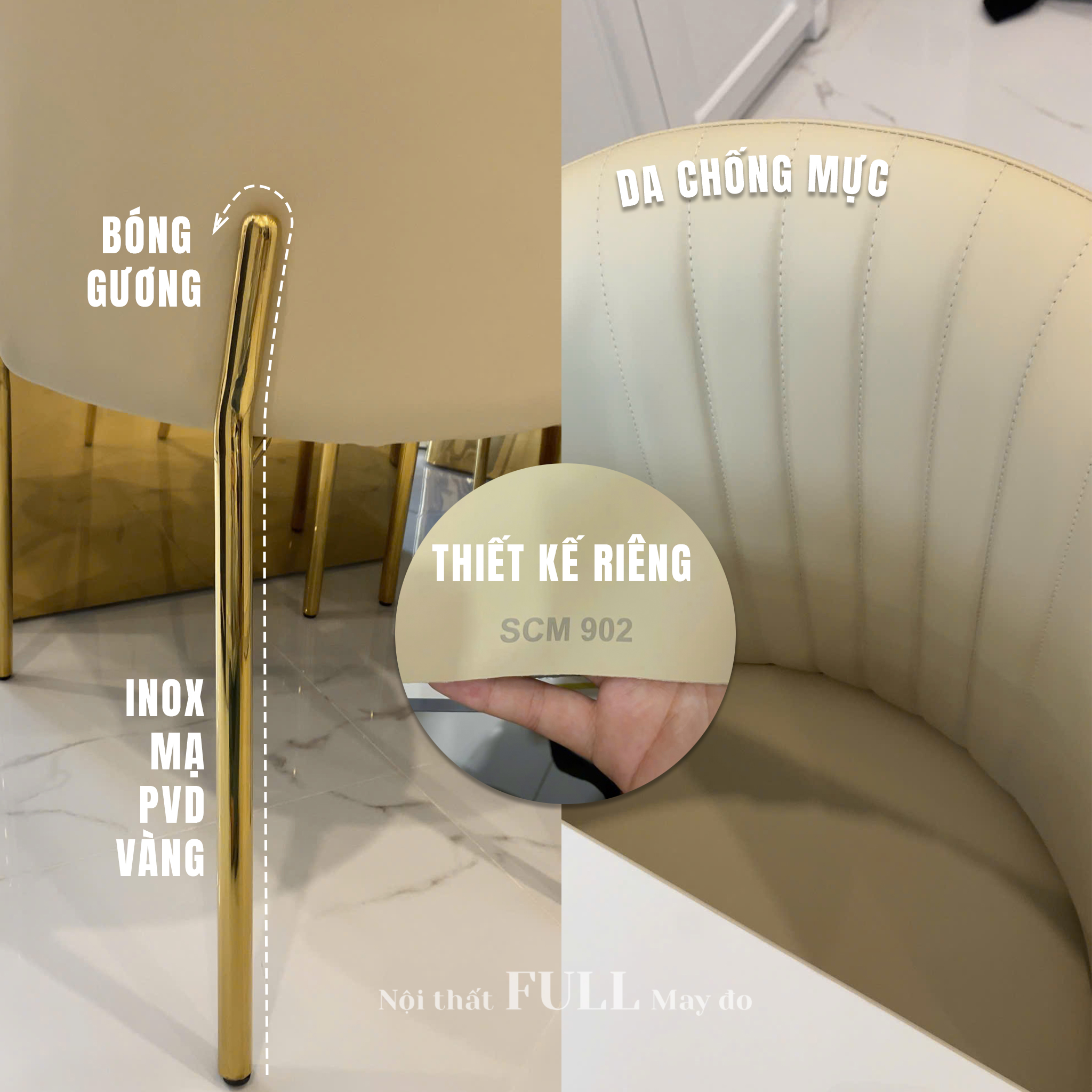 | Chân ghế | Inox mạ PVD vàng |