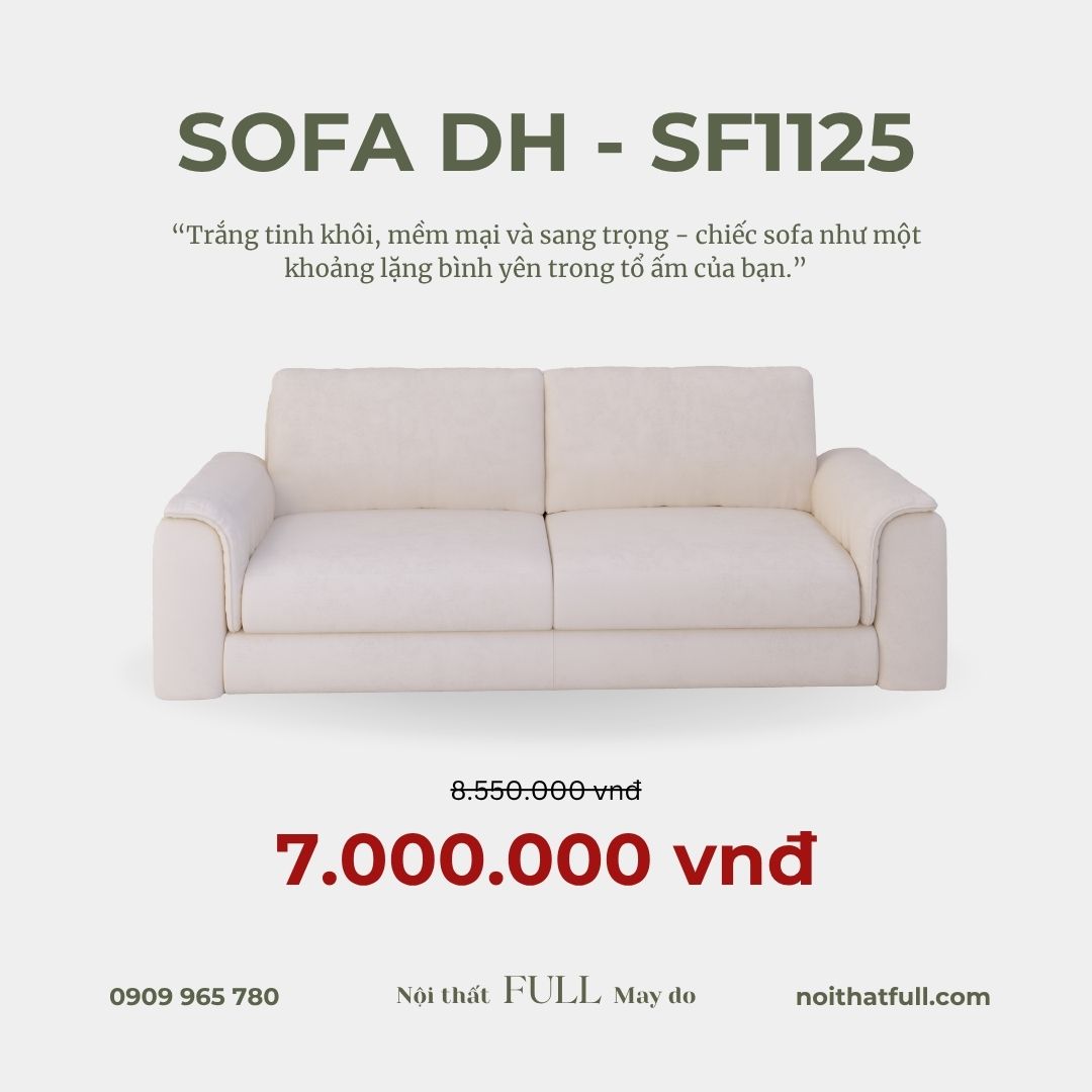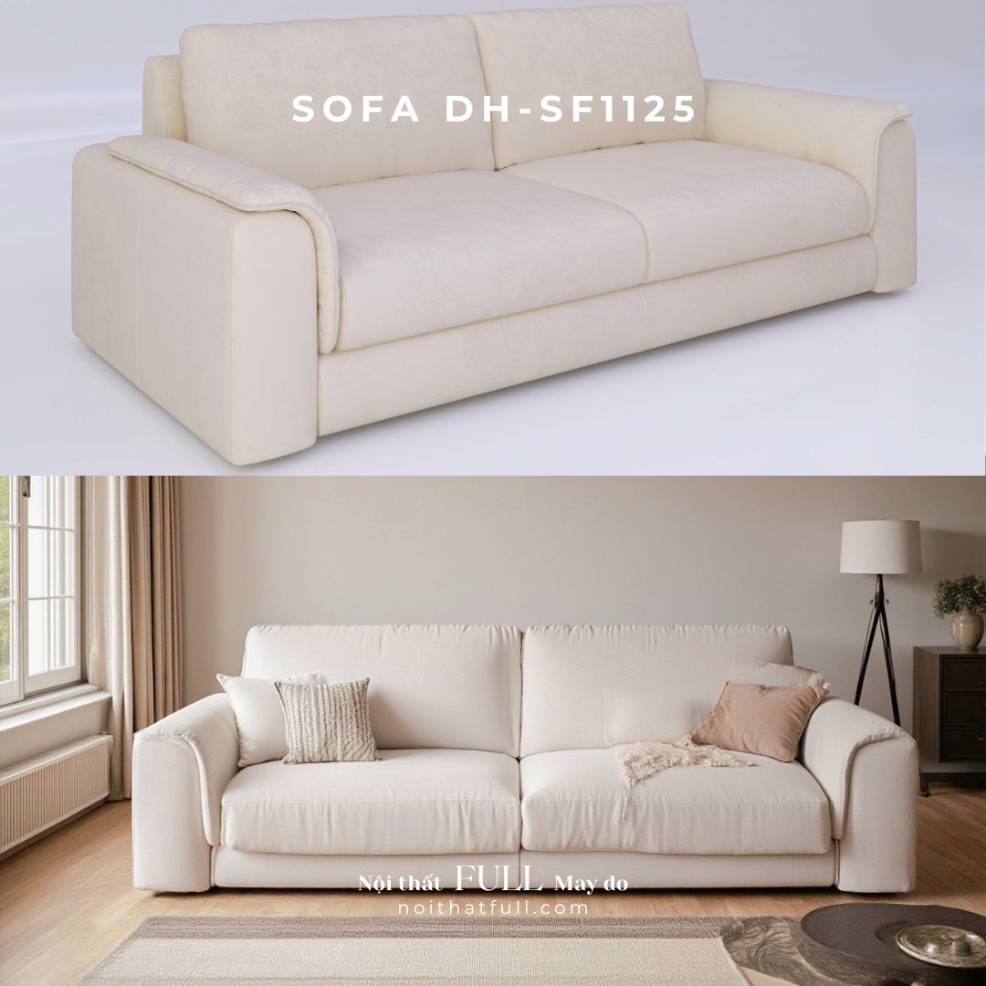 Lấy cảm hứng từ phong cách Scandinavian, Sofa DH – SF1125 mang tinh thần tối giản nhưng vẫn ấm áp và gần gũi. Những đường cong mềm mại tạo cảm giác mời gọi, trong khi tone trắng tinh khôi giúp không gian trở nên sáng sủa, thanh thoát và sang trọng.