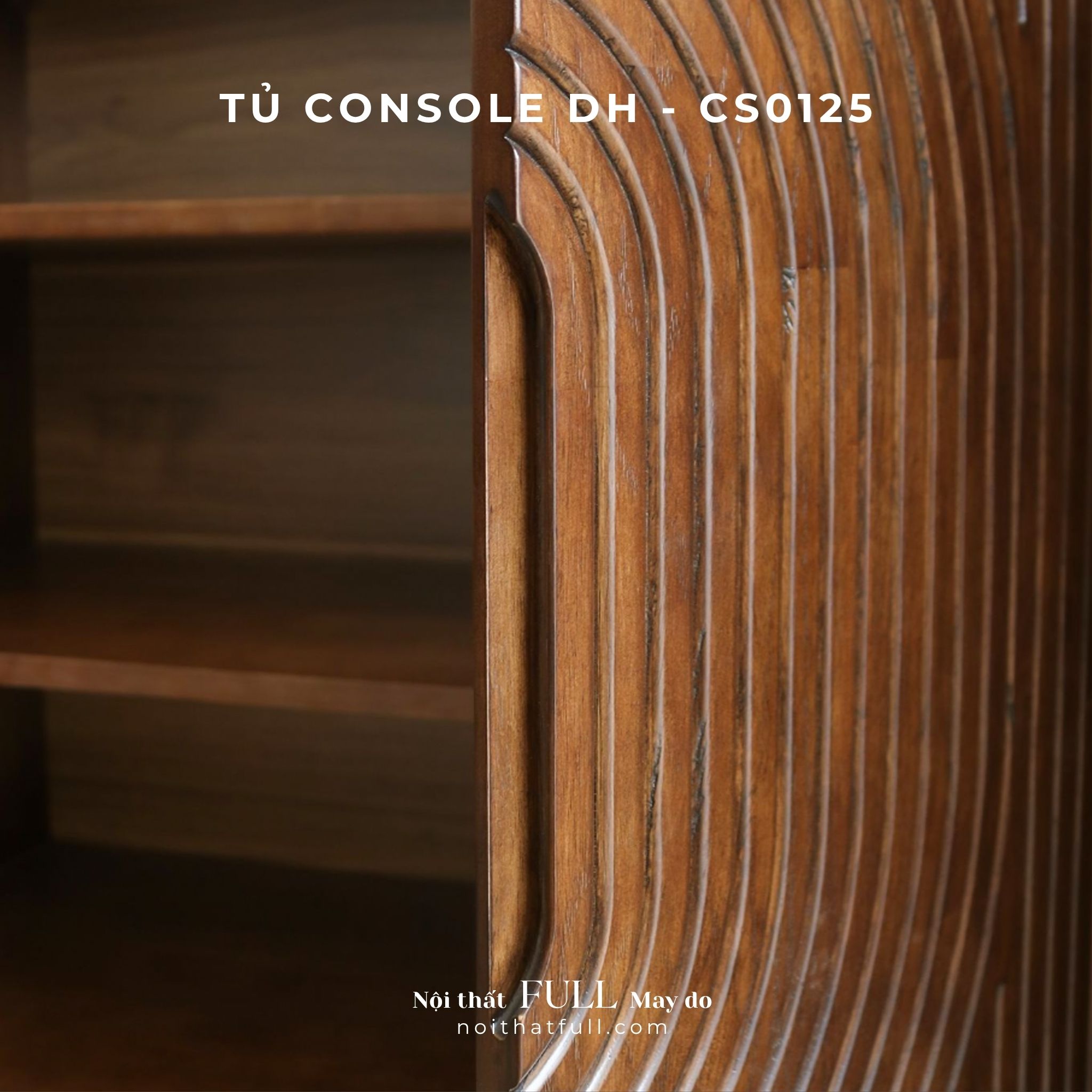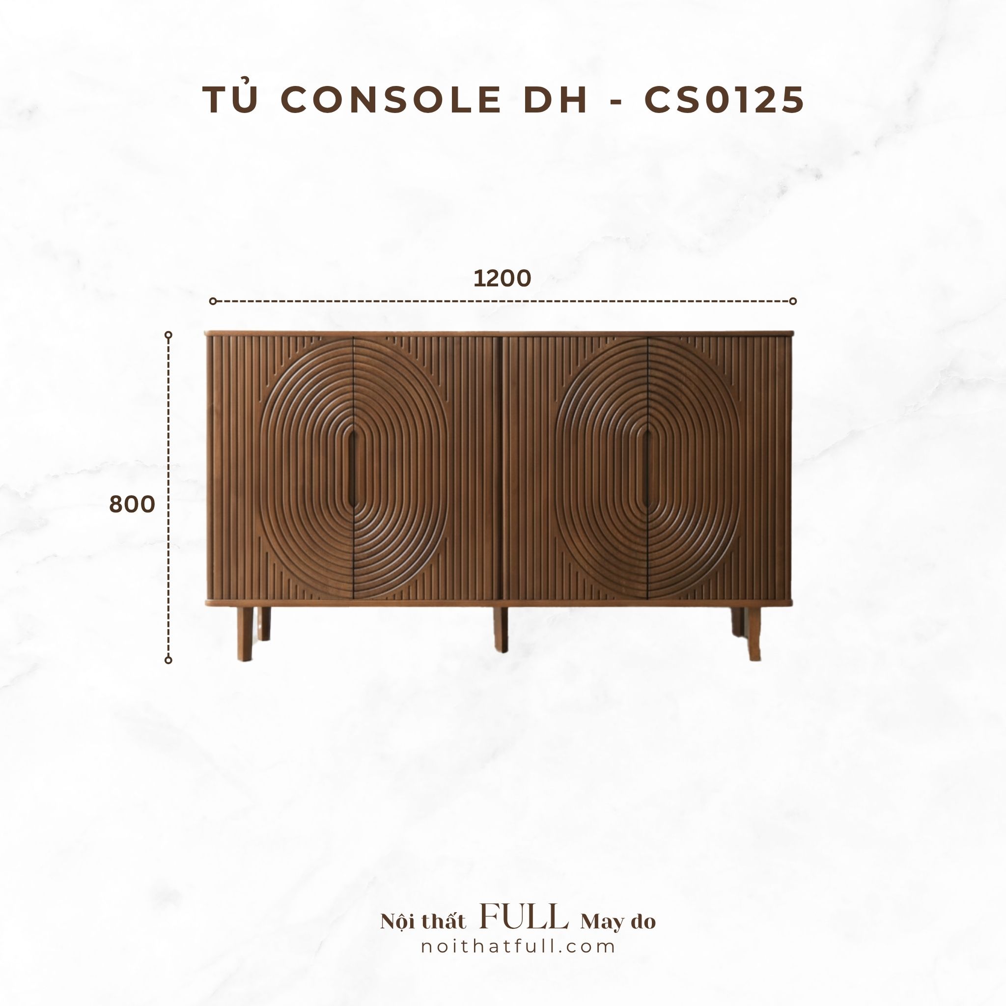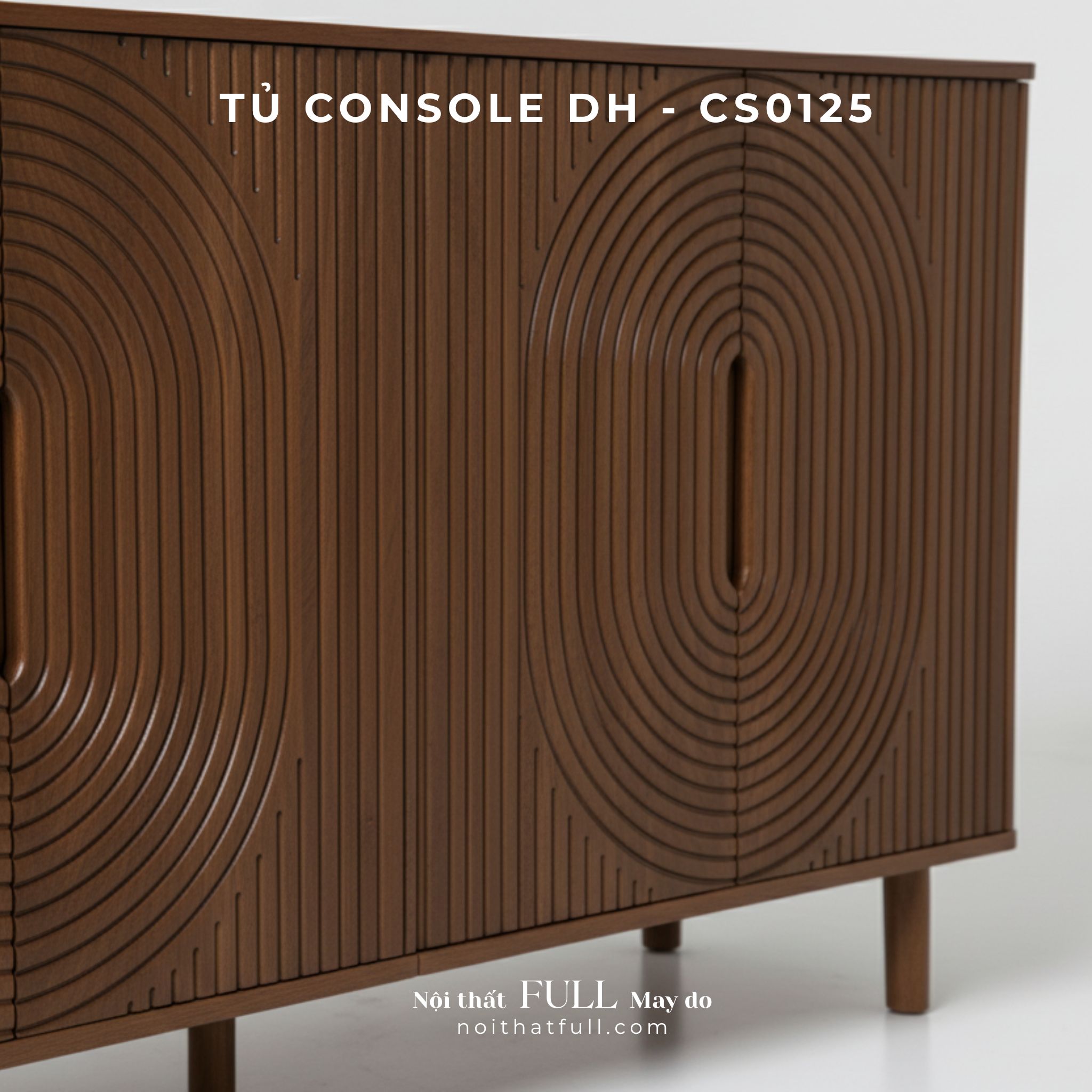 Chiếc tủ console DH-CS0125 là điểm giao thoa giữa nghệ thuật và hình khối hiện đại. Thiết kế mặt cánh với hoa văn CNC đồng tâm độc đáo, tạo nên chiều sâu và nhịp điệu thị giác tinh tế.