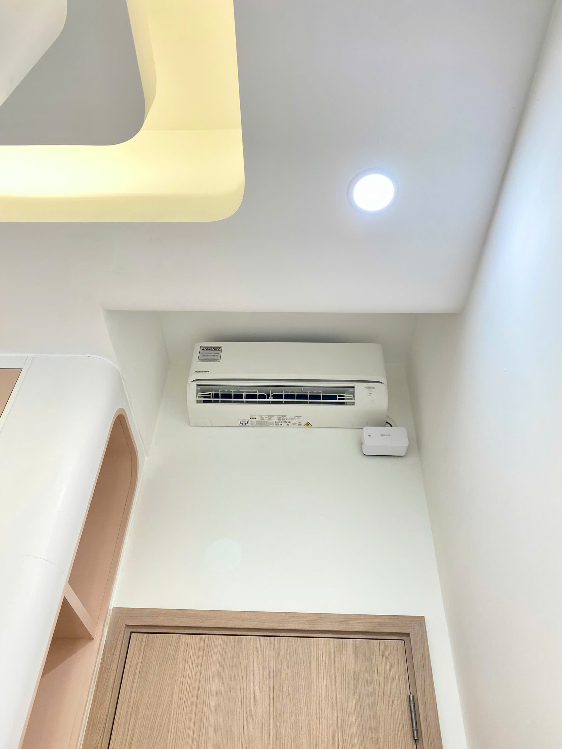 Hệ trần thạch cao giật cấp kết hợp led trần được thi công nhằm xử lý ánh sáng và tạo chiều sâu cho không gian. Ánh sáng được phân bổ mềm mại, giúp căn hộ thoáng hơn và giữ được vẻ tinh tế xuyên suốt tổng thể thiết kế.