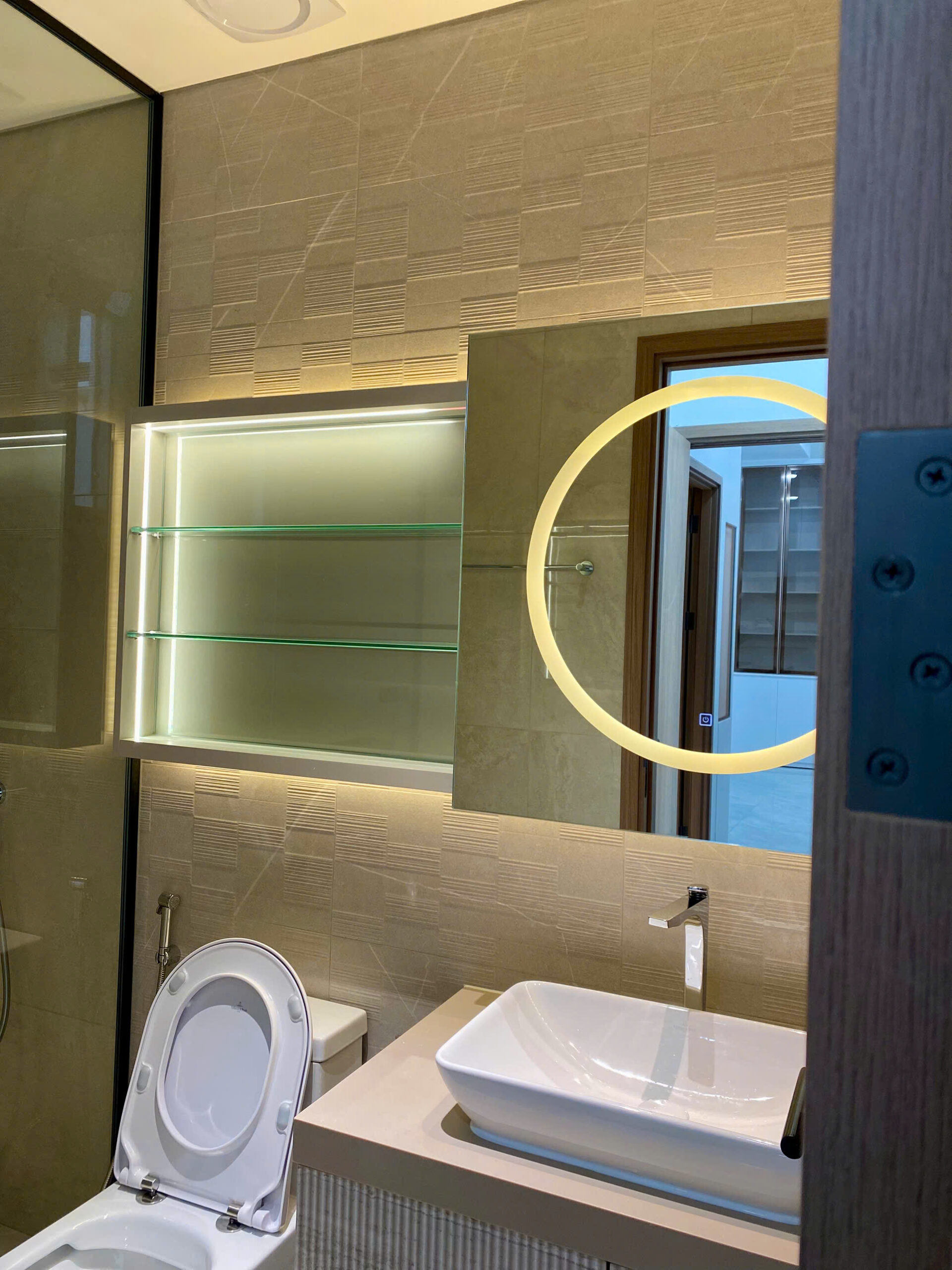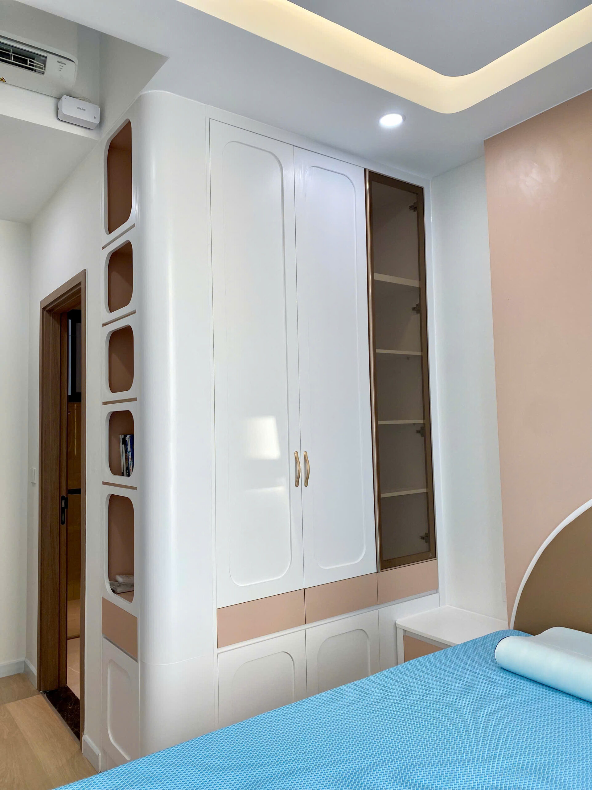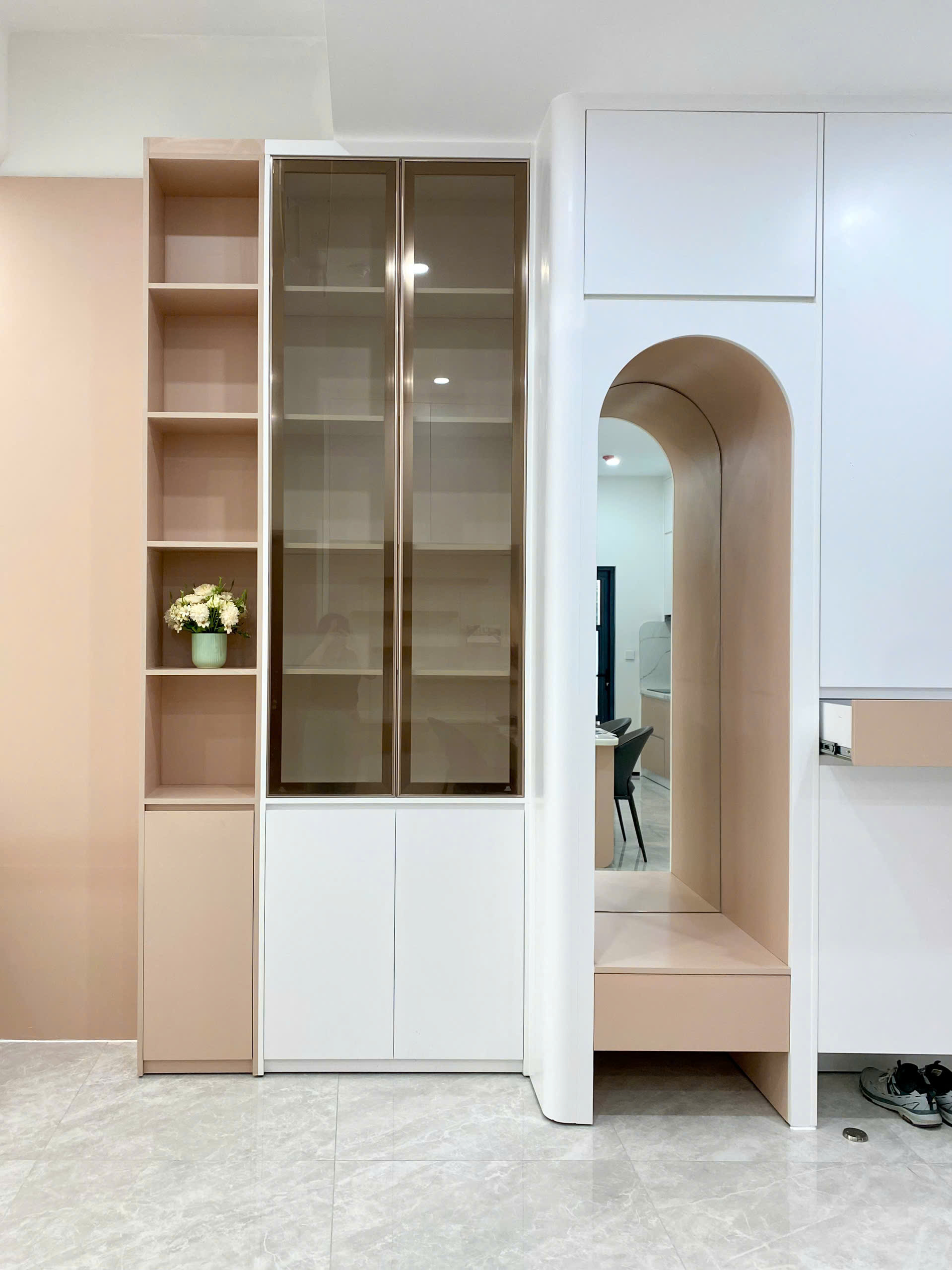 Bước qua cửa là ánh sáng mở ra toàn bộ không gian. Các bề mặt được hoàn thiện gọn gàng, chi tiết lắp ghép chính xác, tạo nên một tổng thể sẵn sàng cho cuộc sống bắt đầu ngay lập tức. Đây là dự án thiết kế và thi công nội thất trọn gói căn hộ The Aurora – Phú Mỹ Hưng dành cho chủ đầu tư Chị Tuyền.