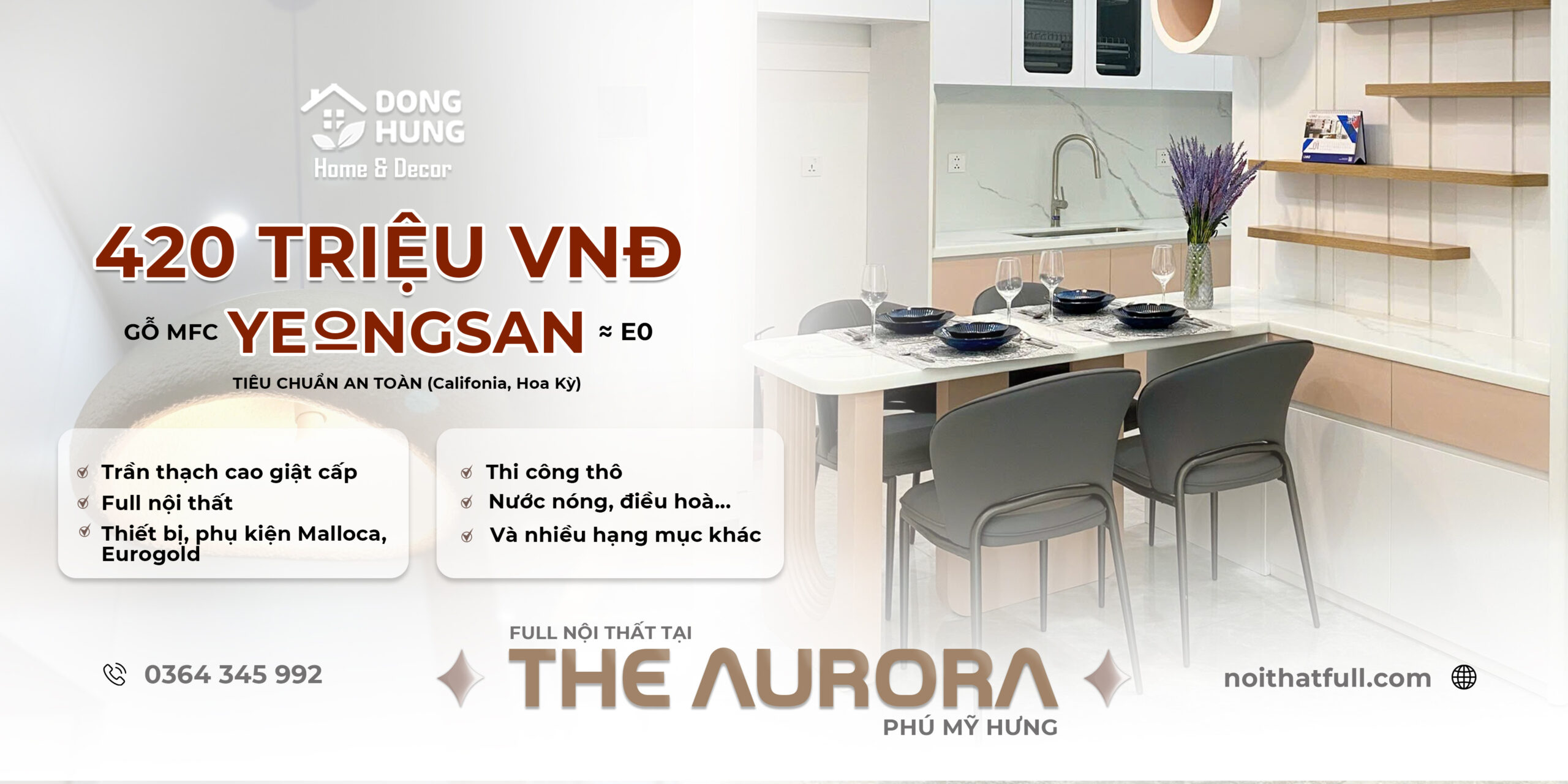 Full nội thất căn hộ The Aurora – Phú Mỹ Hưng trọn gói 420 triệu