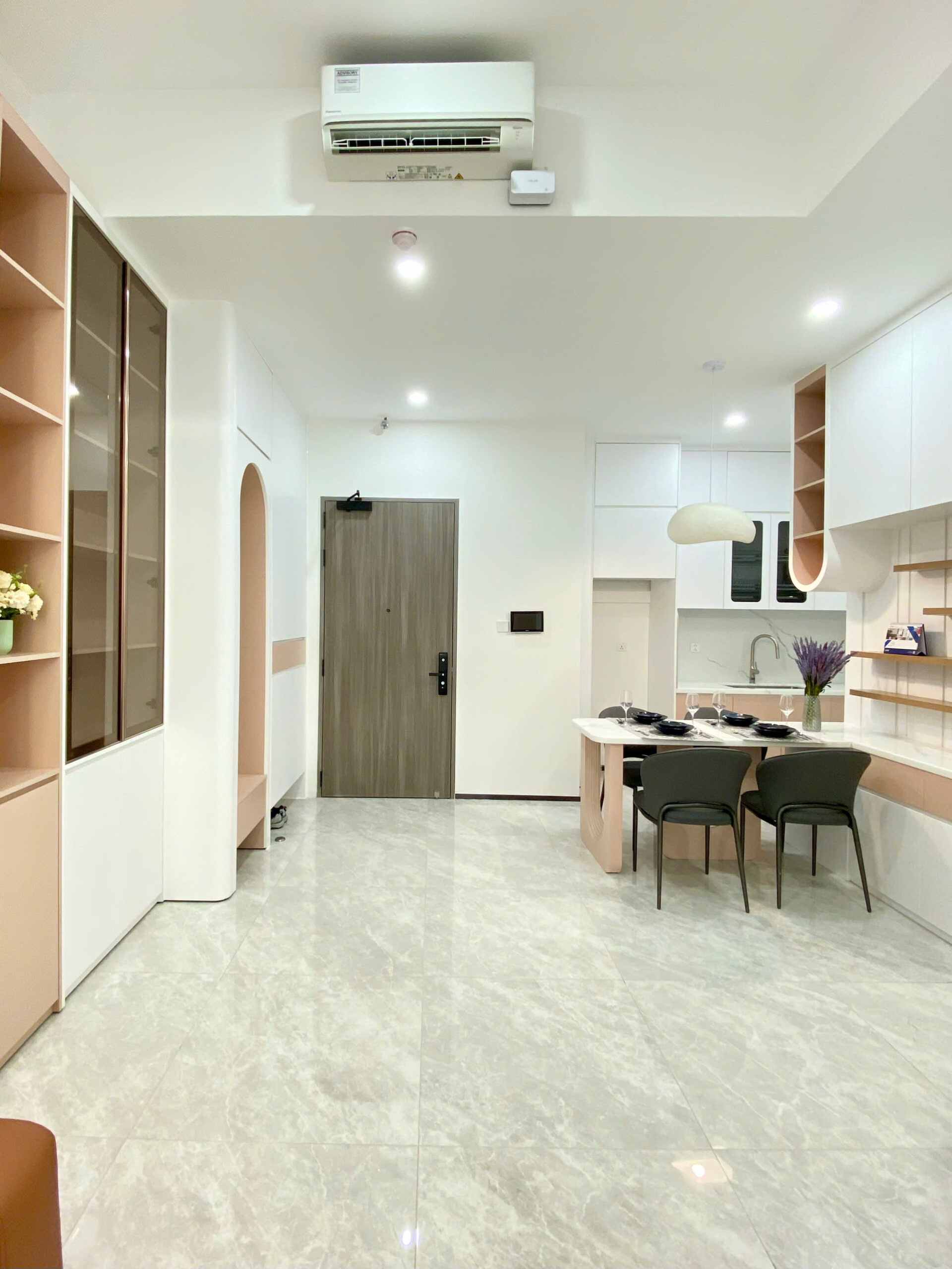Căn hộ được bàn giao full nội thất và decor. Đồng thời hoàn thiện các hạng mục thô quan trọng như hệ điều hòa và nước nóng lạnh. Gia chủ có thể dọn vào sinh hoạt ngay mà không cần thi công thêm.