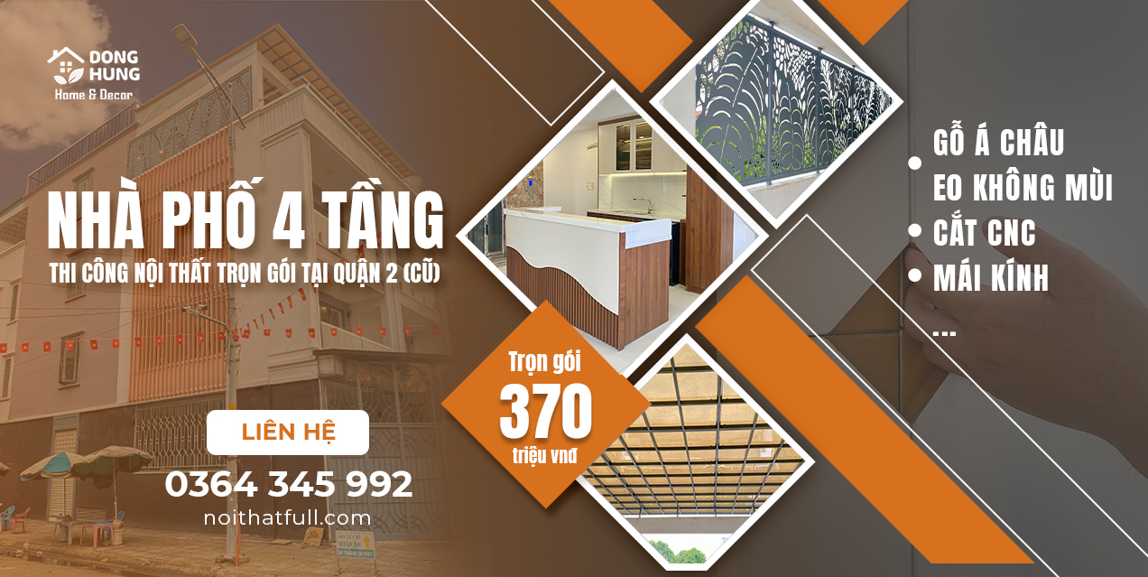 Đồng Hưng vừa hoàn thiện dự án thi công nội thất trọn gói cho nhà phố 4 tầng tại Quận 2 (nay thuộc TP. Thủ Đức) của chị Quý với tổng chi phí 370 triệu đồng.