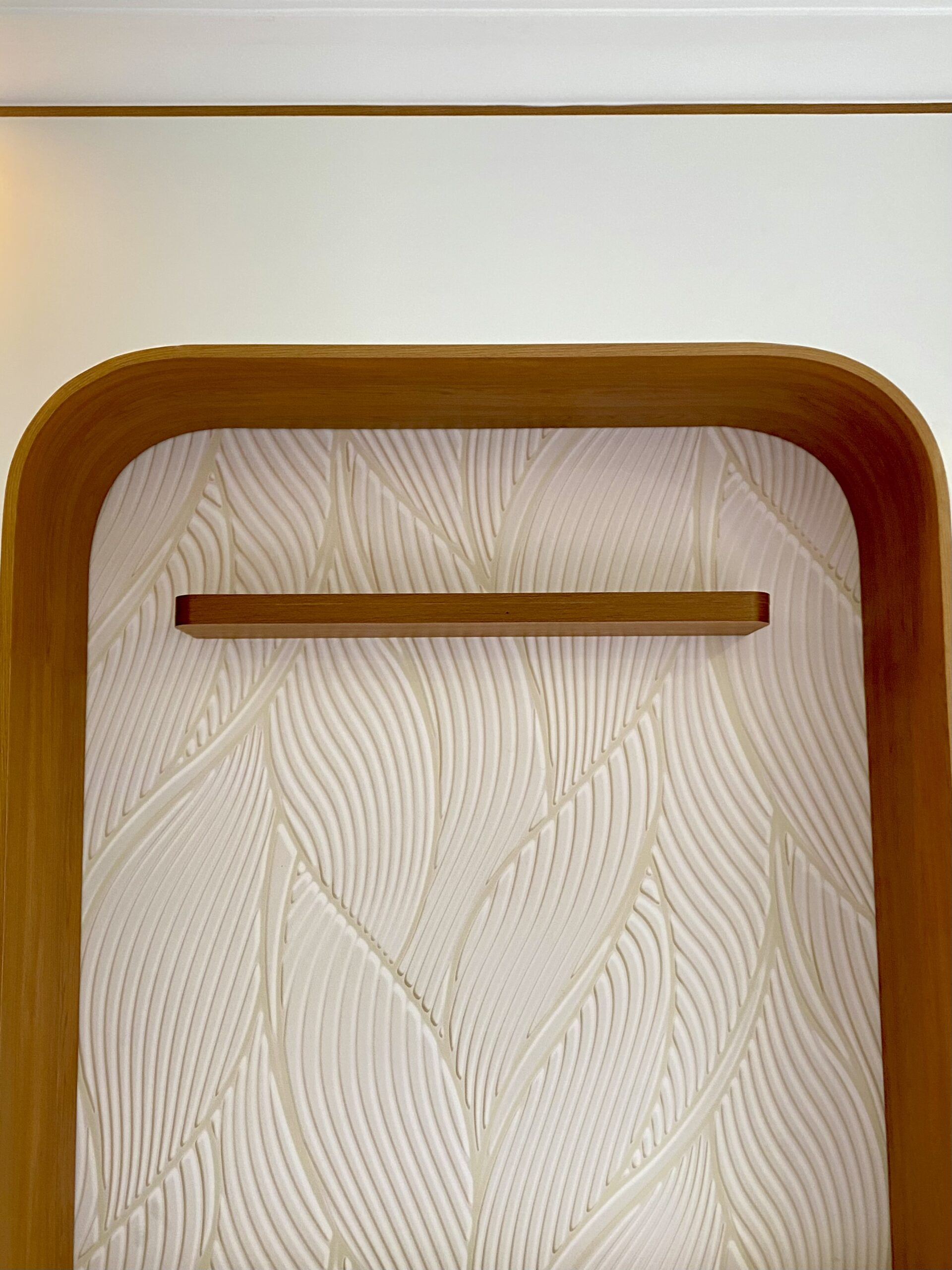 Để tạo dấu ấn cá nhân cho không gian sống, công trình sử dụng giấy dán tường 3D và giấy in thiết kế riêng cho từng khu vực.