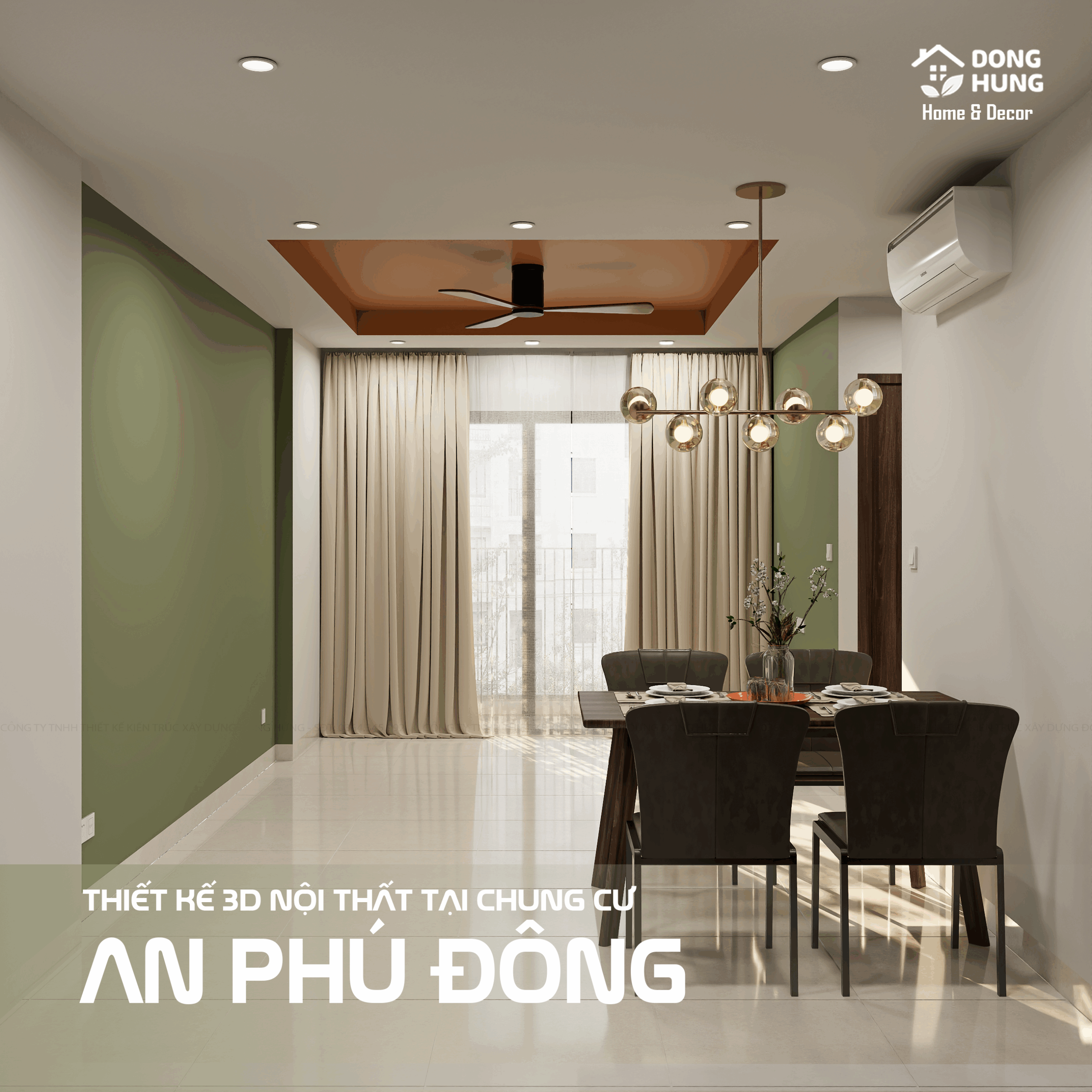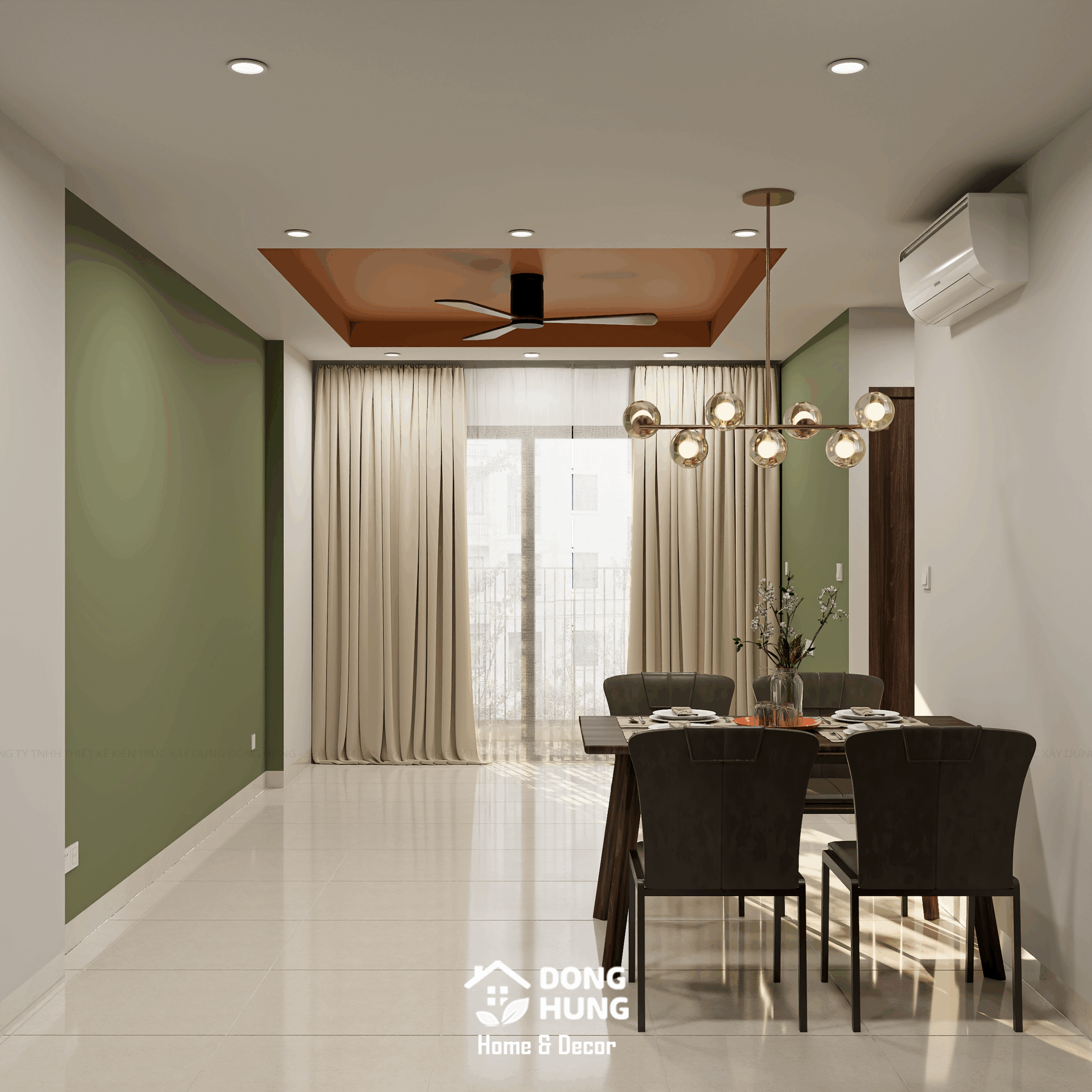 Không gian sống không chỉ là nơi ở, mà còn là nơi thể hiện cá tính. Và ở dự án thiết kế 3D căn hộ 2 phòng ngủ tại Phú Đông Sky Garden, đội ngũ Đồng Hưng lựa chọn tạo nên một bức tranh nội thất đầy cảm xúc, nổi bật bởi trần sơn hiệu ứng màu camtường xanh đậm – hai điểm nhấn phá cách nhưng được tính toán kỹ để đạt sự hài hòa tổng thể.