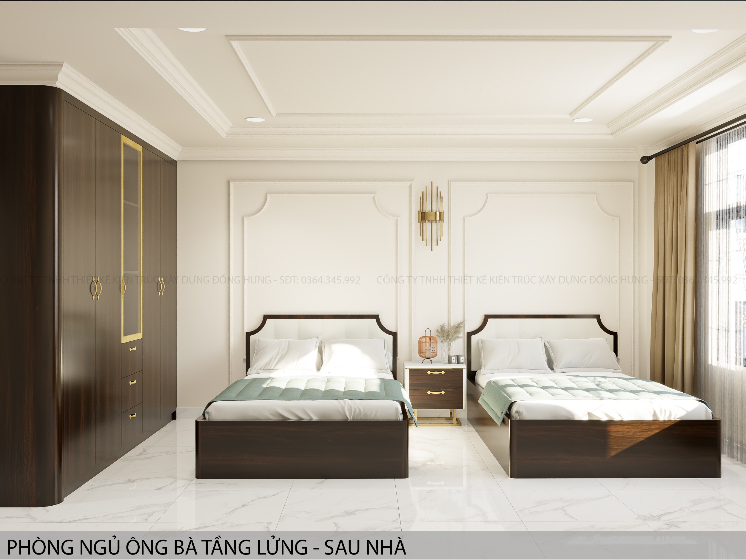 Tầng lửng – Phòng ngủ ông bà ấm cúng và thoáng đãng