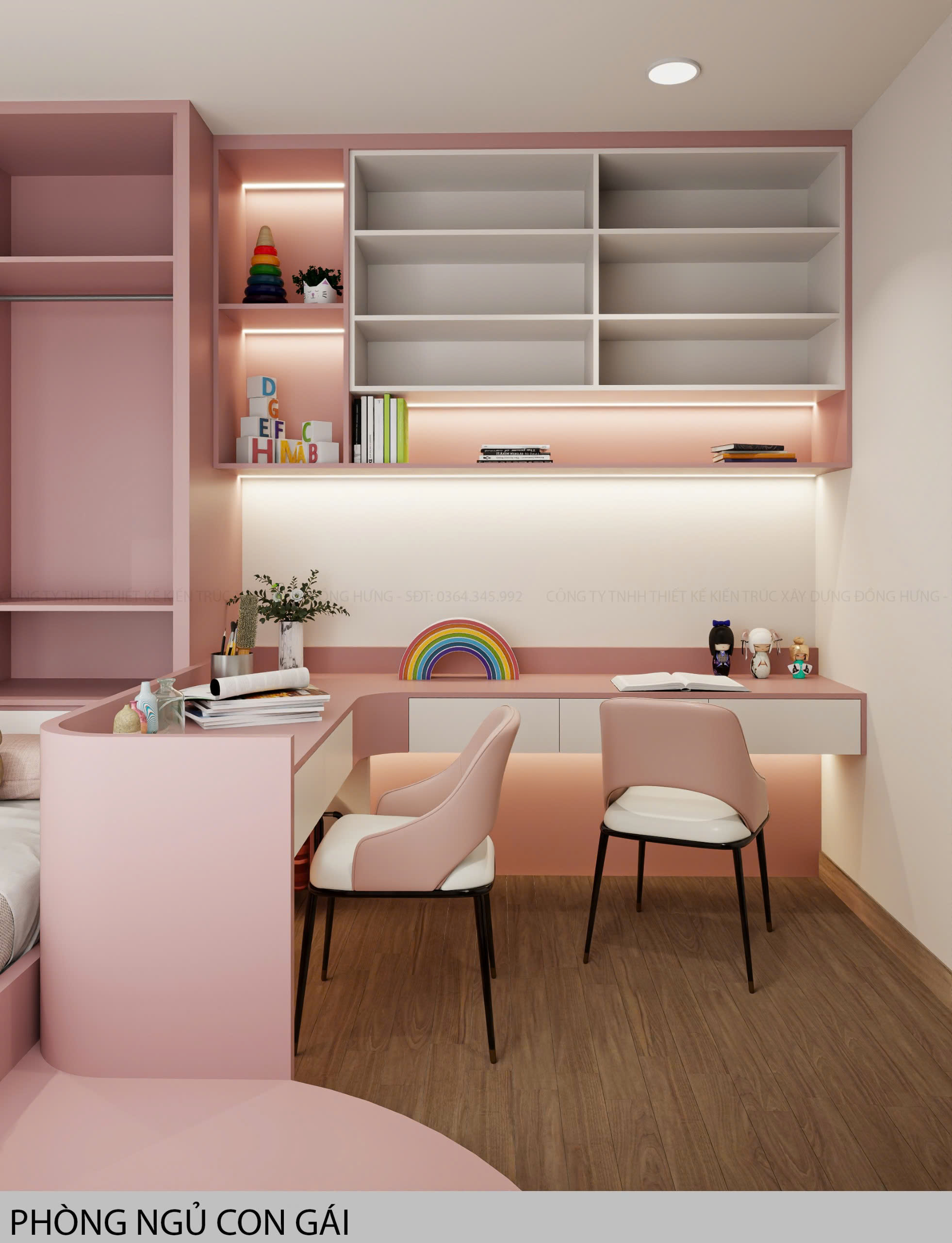 Phòng thiết kế theo phong cách đáng yêu, kết hợp không gian học tập cho bé vô cùng tiện nghi