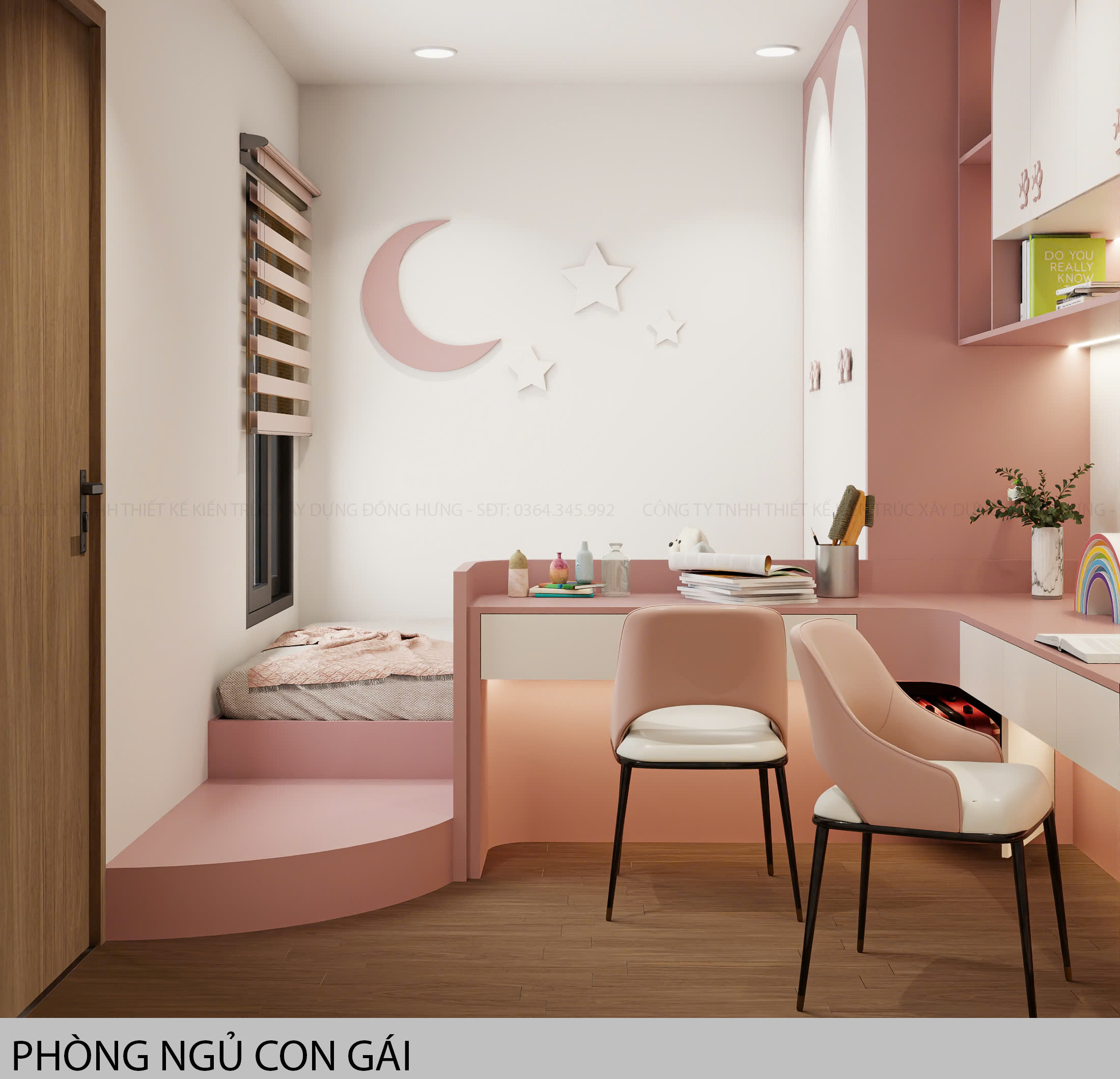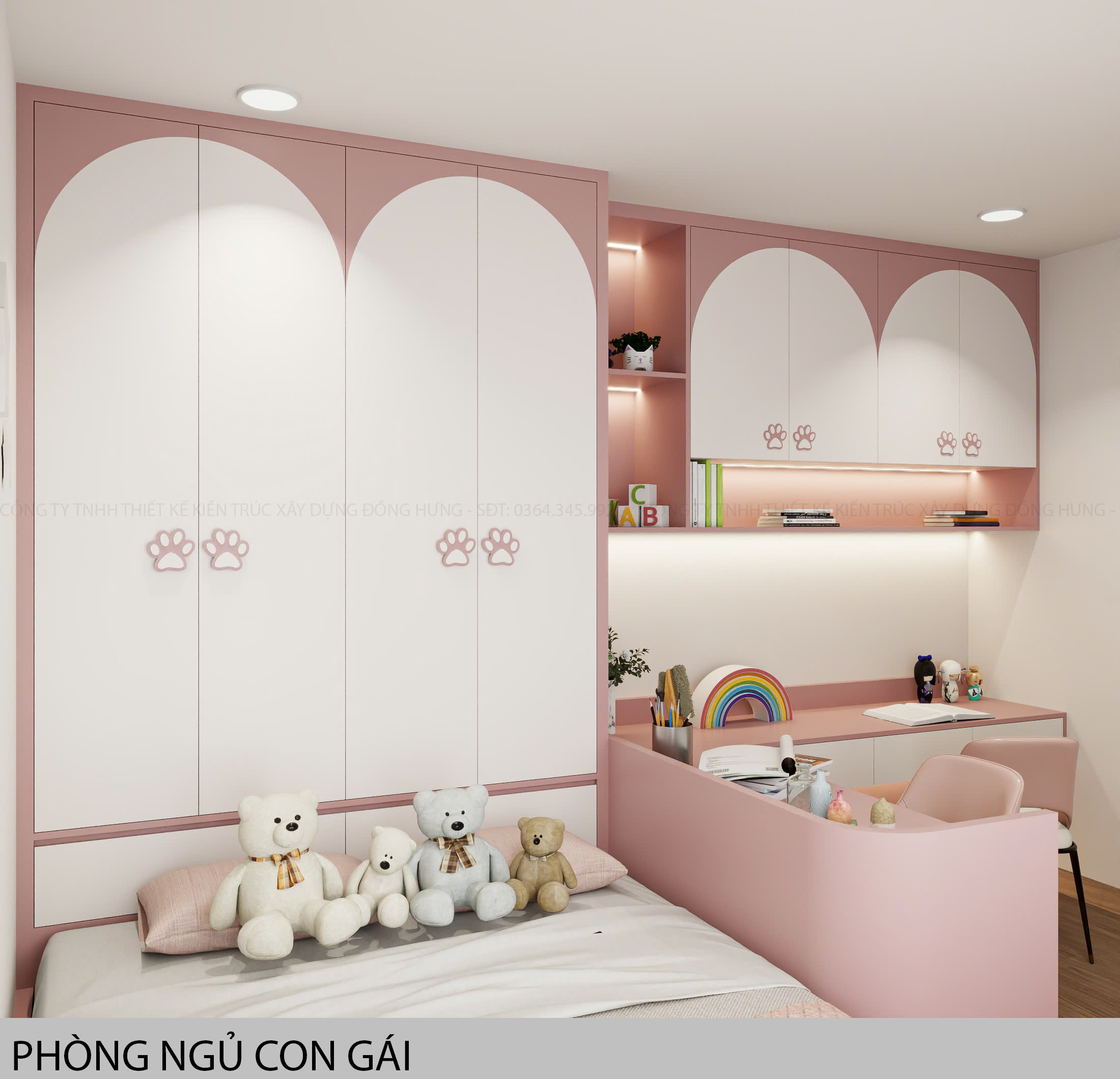 3. Phòng ngủ cho bé gái với gam màu hồng xinh yêu, mang lại nét nữ tính và dịu dàng
