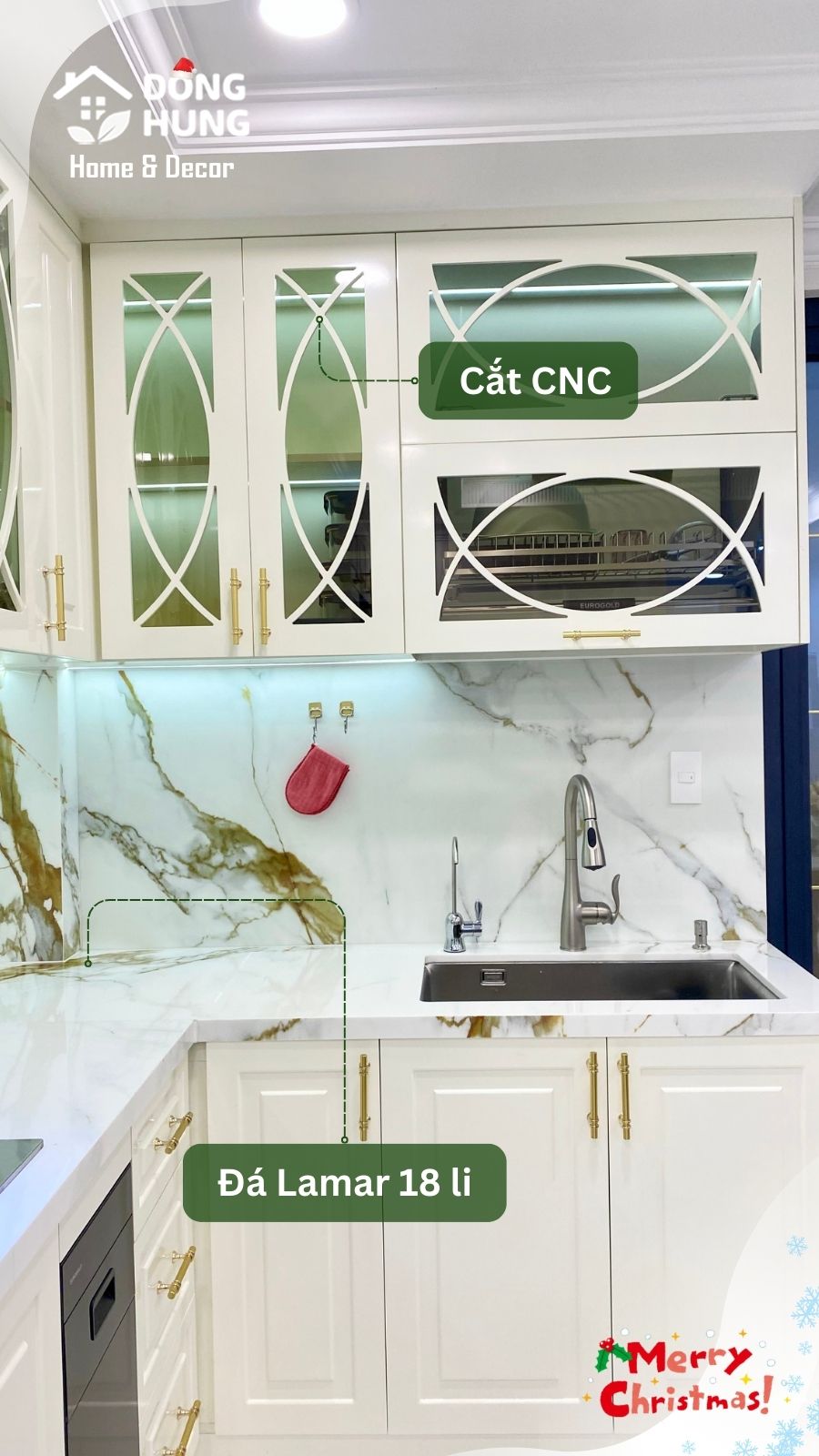 Tất cả được bố trí khoa học, giúp không gian bếp luôn gọn gàng, tiện nghi và sử dụng hiệu quả trong thời gian dài.