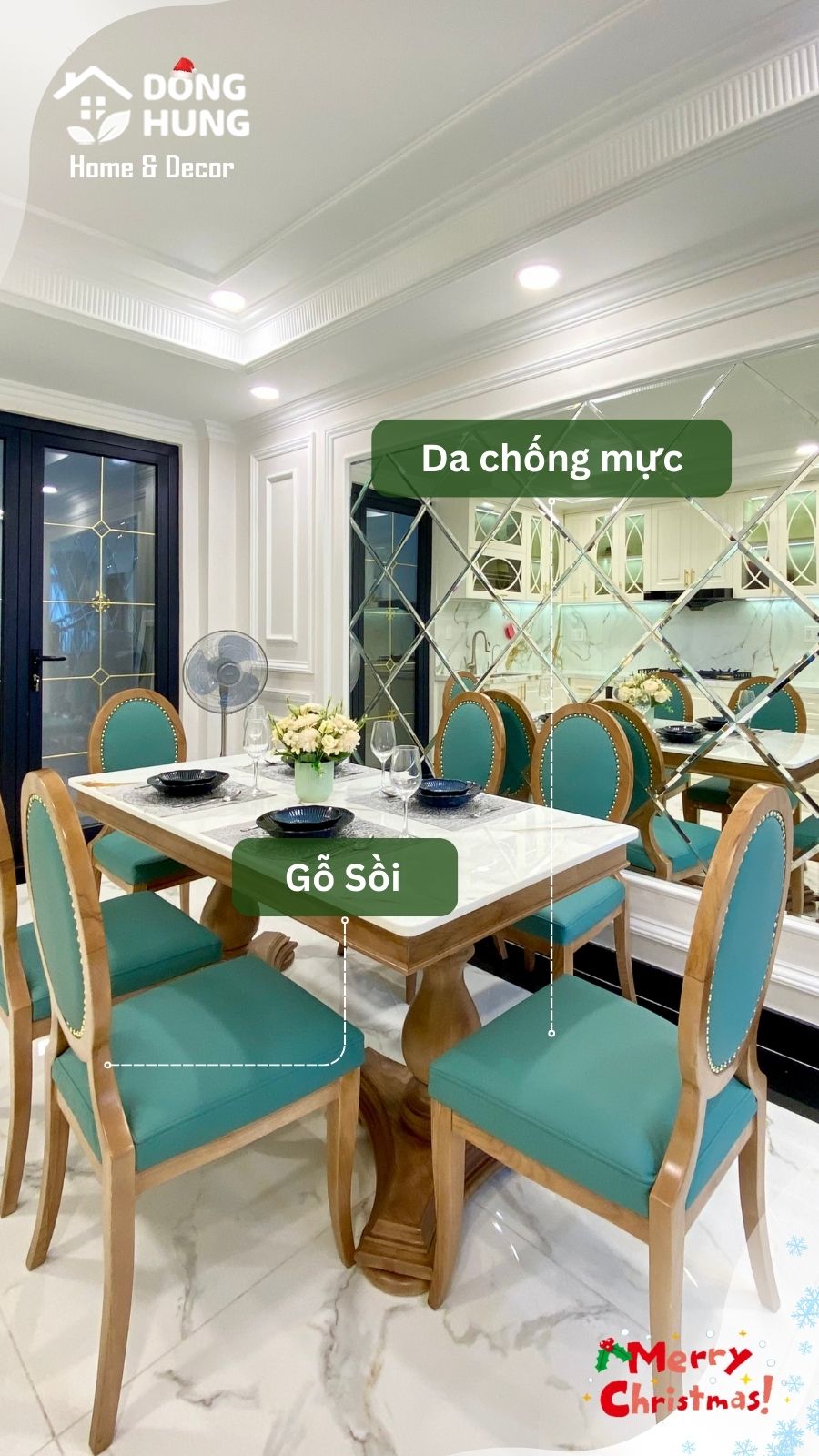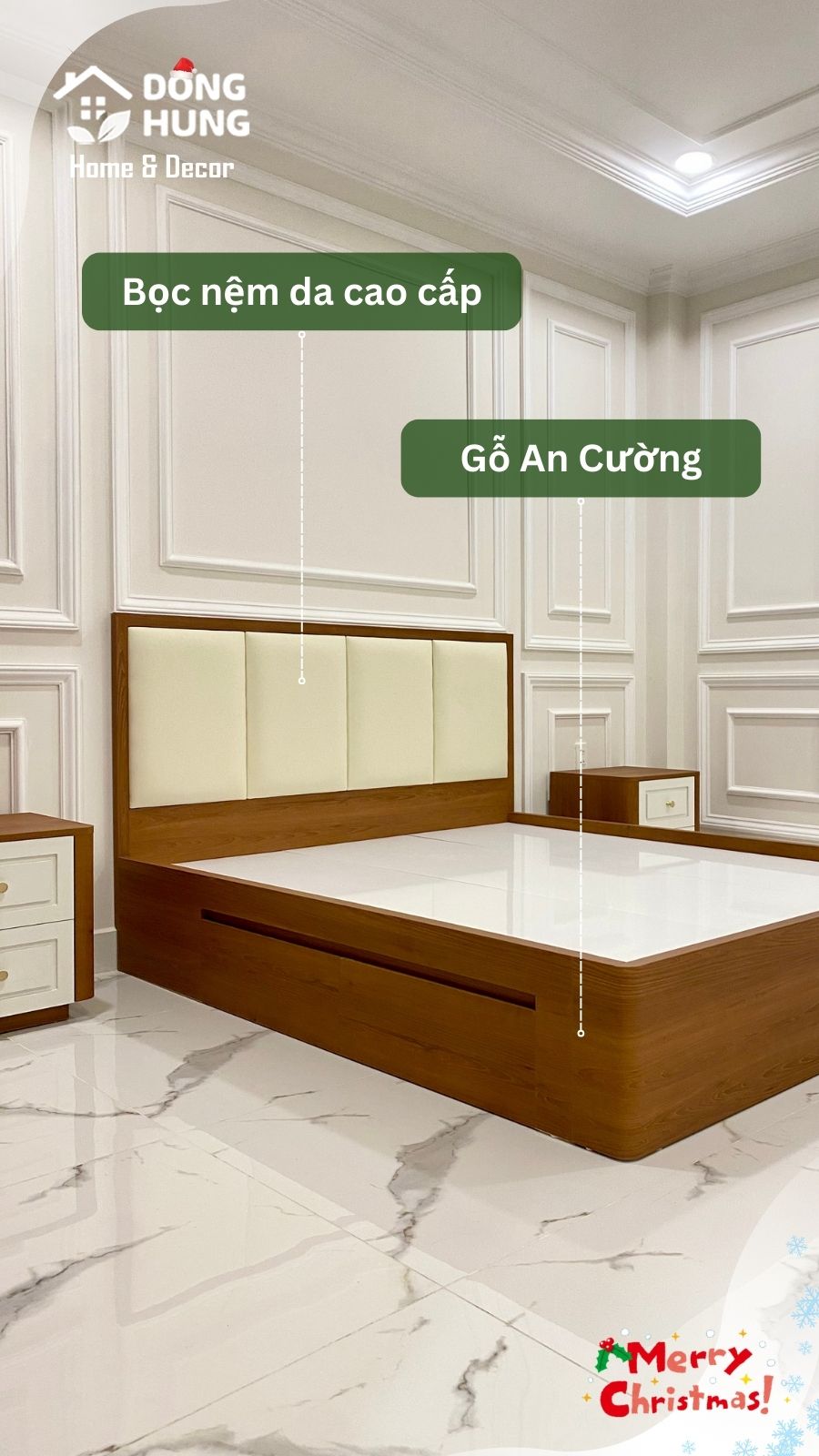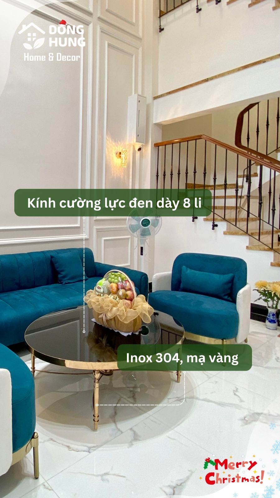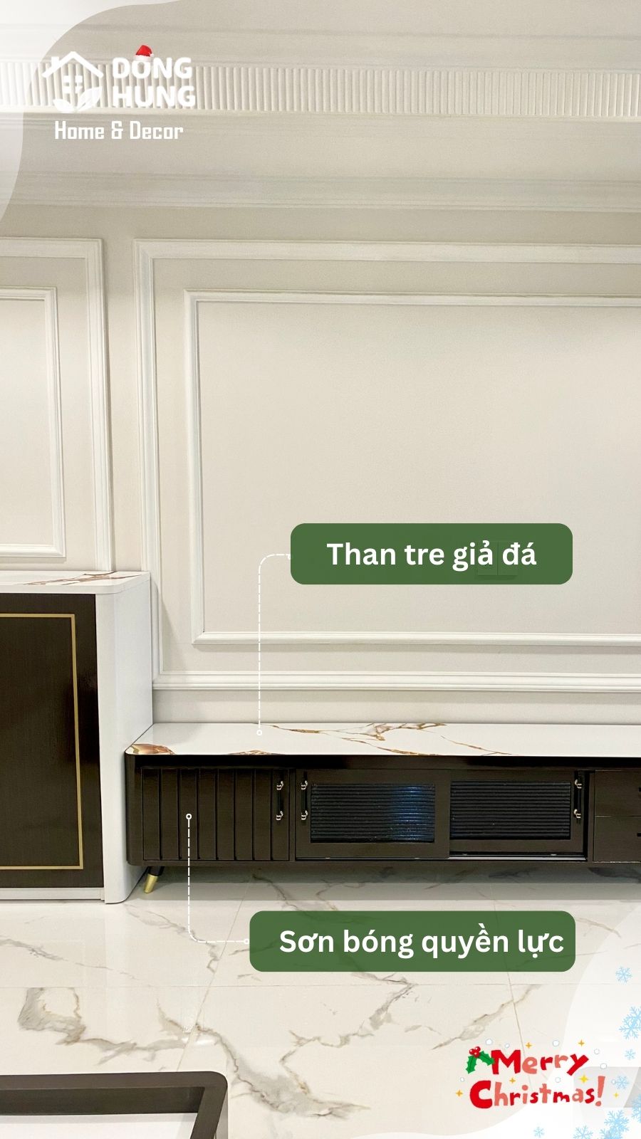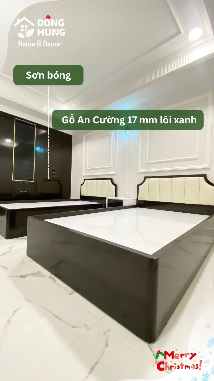 Gỗ An Cường phủ bóng, phối chỉ inox vàng tạo điểm nhấn tinh tế